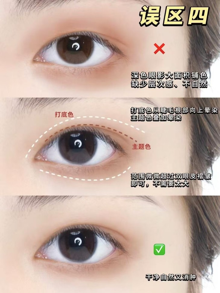 深色眼影大面积铺色 缺少层次感 不自然