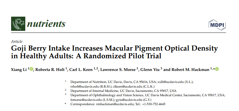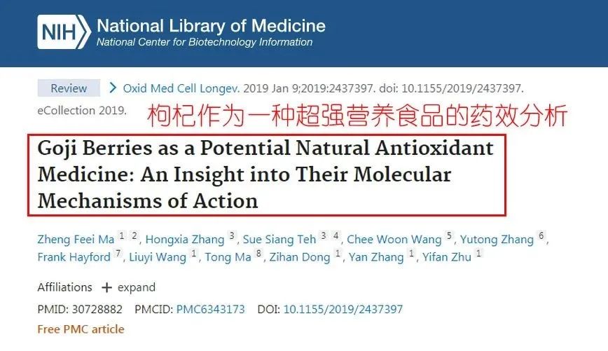 美国国立卫生研究院(NIH)2019年公开了一分关于枸杞的研究,证实其具有抗氧化和抗衰老作用、增加代谢、抗青光眼作用、免疫调节、神经保护特性和抗糖等作用。
