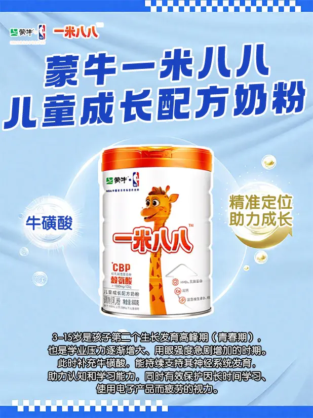 💪蒙牛一米八八儿童奶粉,科学添加,精准营养,❤️陪伴孩子黄金成长期~