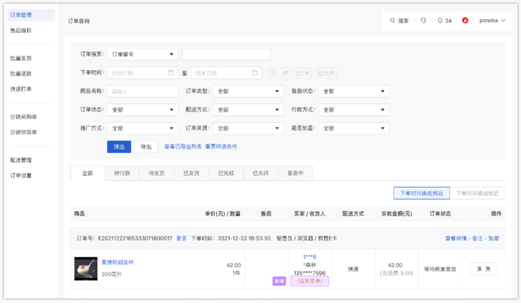 配送方式为快递发货、且订单类型是普通实物的待发货订单才支持买家修改
