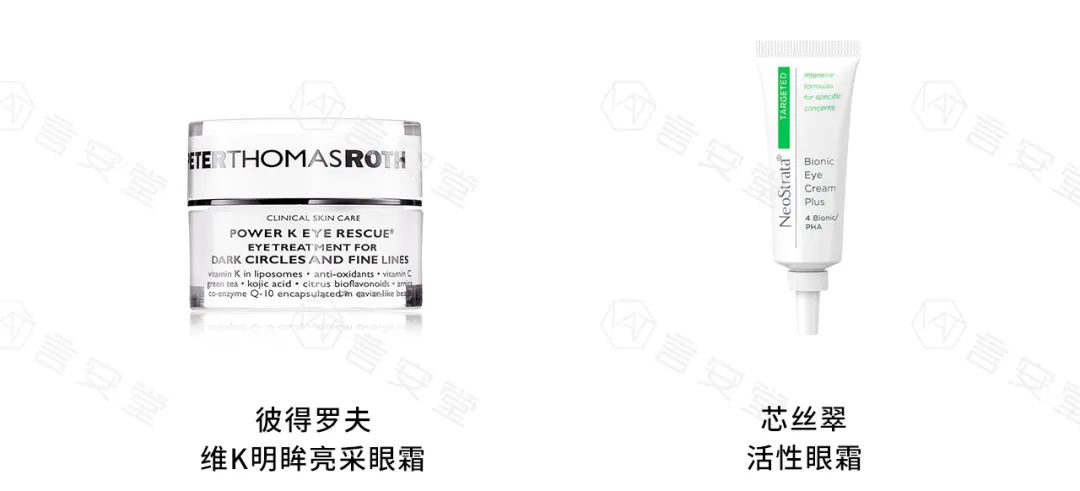 在产品选择上,可以重点关注主打以下成分的眼部产品。