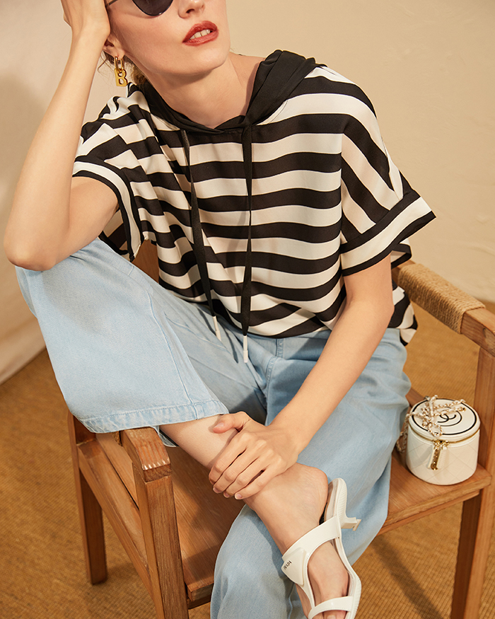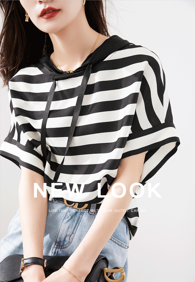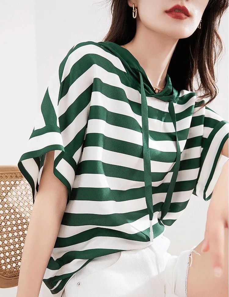 秒杀|真丝连帽条纹衫,穿上清爽做少年~