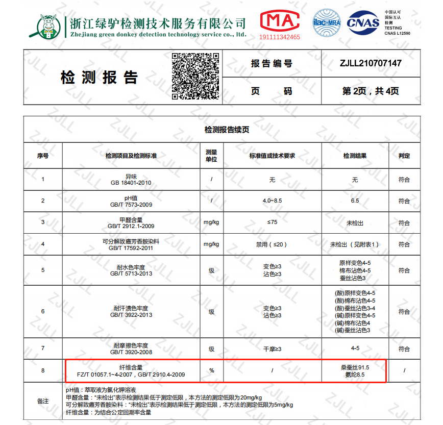 92%桑蚕丝+8%氨纶