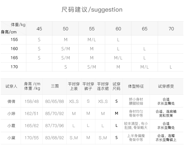 (身高160,体重106试穿M合适)
