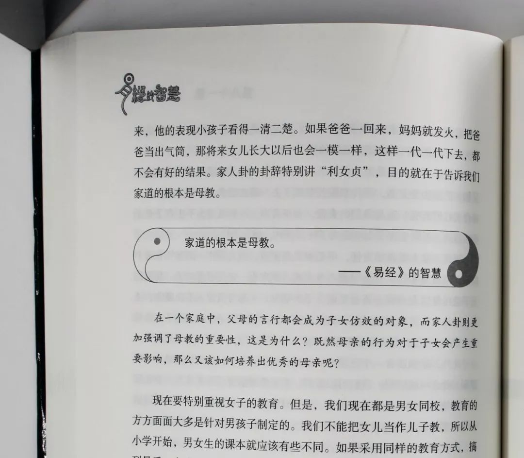 讲家人卦时,以夫妻相处言行案例,告诉我们家道的根本是母教。在一个家庭里丈夫要爱护妻子,妻子要尊重丈夫,才是最好的言传身教。