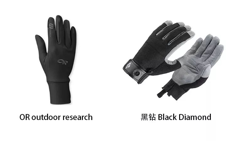 任何徒步环境下最好都准备一双薄款的手套,晒的时候用来防晒,下雨大风的时候防止温度流失,也可防止攀爬过程中被岩石树枝等刮伤。普通的几块钱几十块钱都有,凯乐石、 OR 和 BD 的手套都很耐用,值得入手。