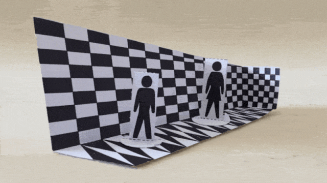就像科技馆里“大小屋”的游戏体验,在一个房子里,个子小的小朋友看起来甚至比他的爸爸妈妈还高。