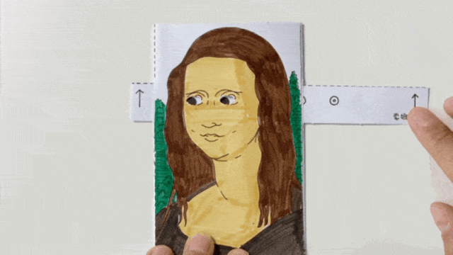 取出“眼睛”的特别的纸带并插入模型中,这样就能让她们的眼睛真正地移动起来啦。