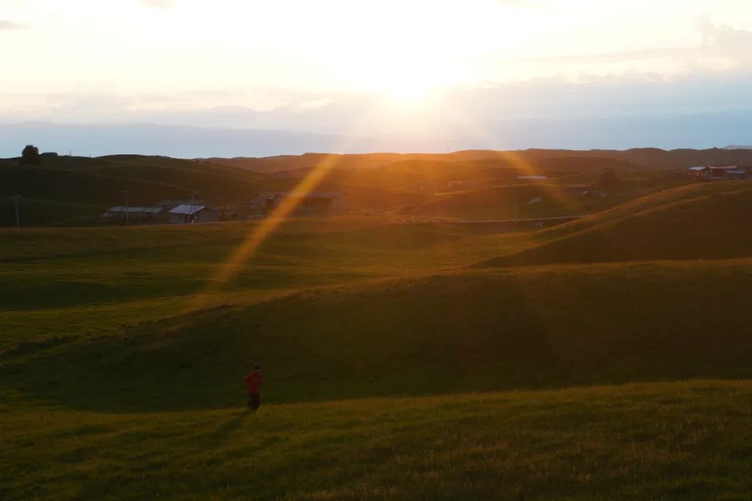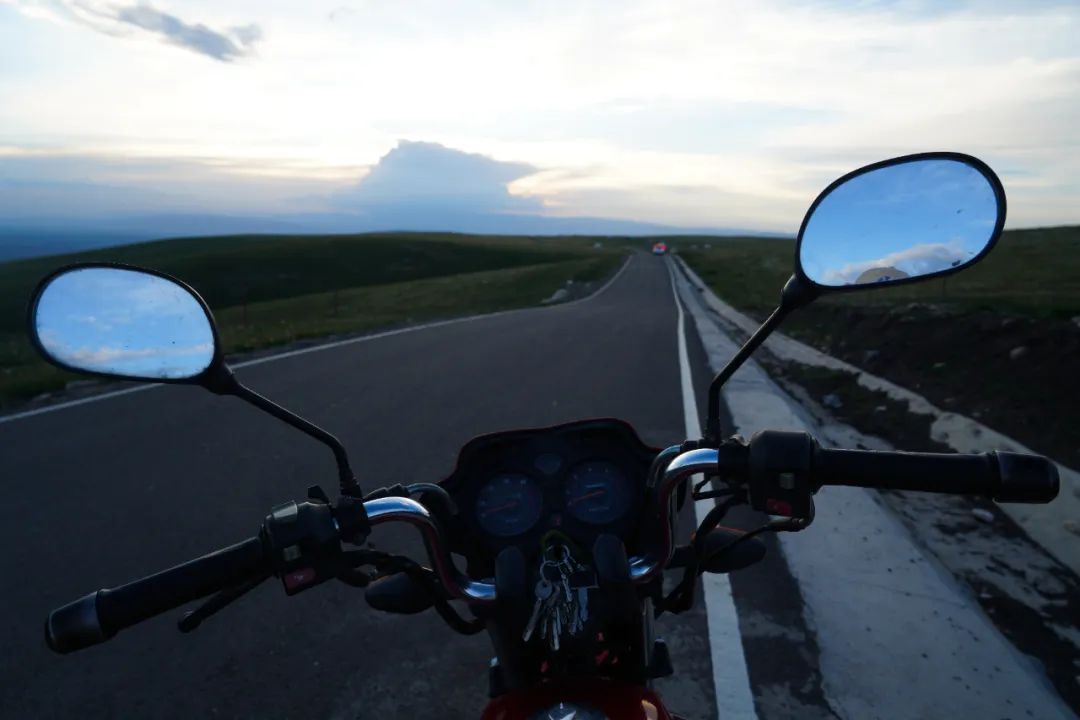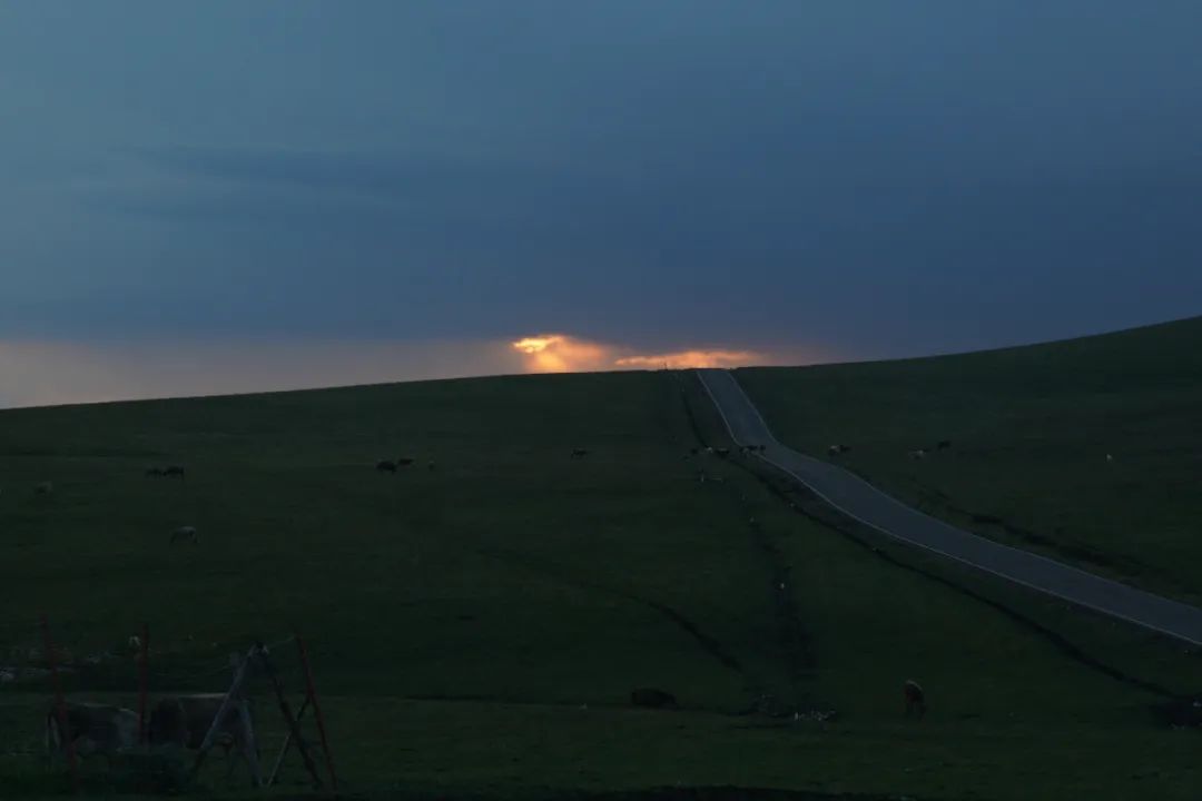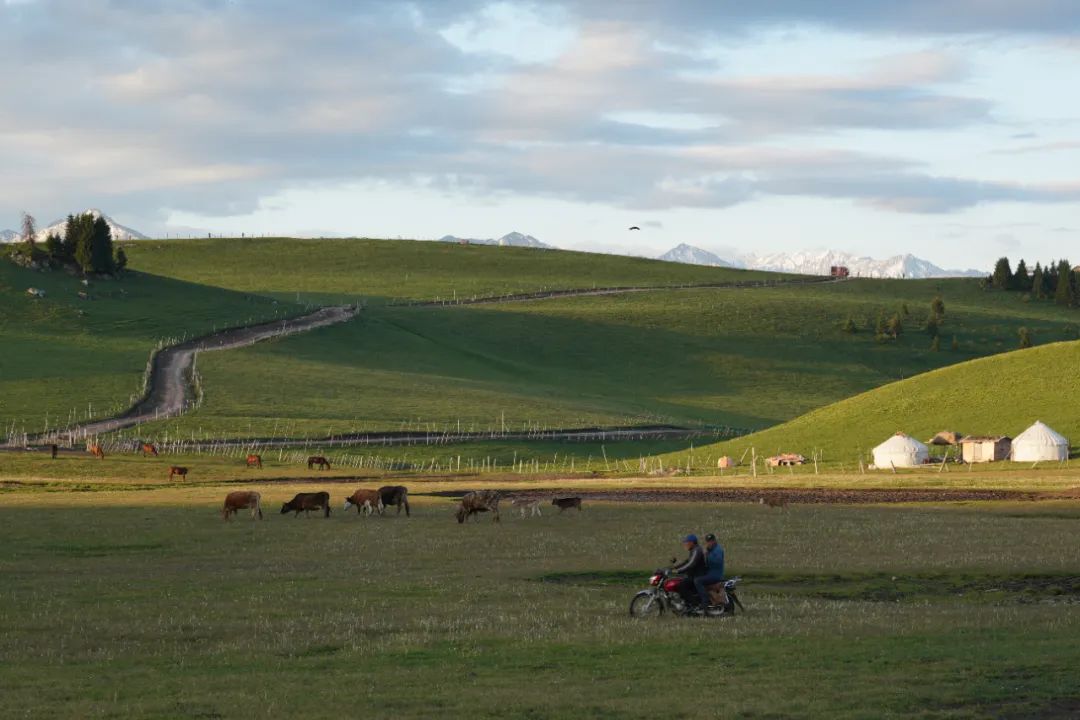 一次是我借了牧民大哥家的摩托车(我有证),在夕阳里驰骋了一把,朝着落日的方向牛群的方向,自由的风简直穿过了我每一根头发丝。直到警察把我拦下,询问我车子来源,我怀疑他们以为我偷了牧民的车正在跑路(开玩笑),当然也是担心安全。