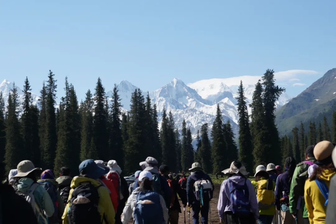 在新疆从一个景点到另一个景点几百公里都是起步距离,从景区这头到景区那头,不停的换乘再换乘也是常规操作。拿全景喀拉峻来说,一天就会经历到“海陆空”的花样换乘,从游客中心乘坐区间车到达码头,再换乘轮船,最后坐上一段索道到达当日的徒步起点。