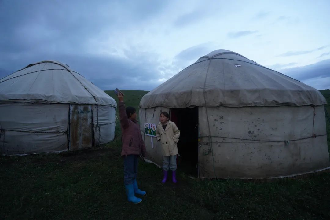 另一次是隔了一周我再次到加撒干营地,转场的牧民在附近开了小卖部,我邀请几位哈萨克小孩陪我一块去,以零食作为交易。这个小卖部比起电视剧「我的阿勒泰」要简陋很多,也没有网,我告诉他们,如果没网我就付不了钱,就没法请你们吃东西咯,小孩们就非常认真的帮我找网。