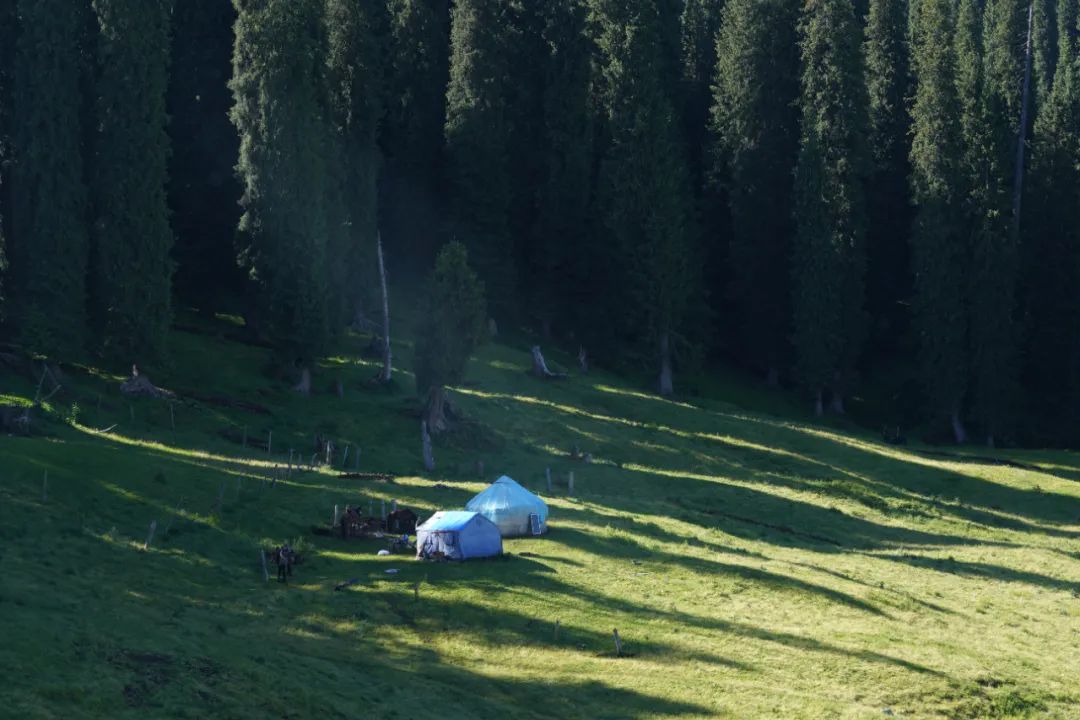 在18天两趟伊犁72公里行程里,我在加撒干营住了两晚。从硬件来看,下过雨毡房还有些滴水,几个人横铺睡在一块,晚上四周都是牛羊声,没有信号没有网络,这里的住宿条件确实不好,但我被治愈了两次。