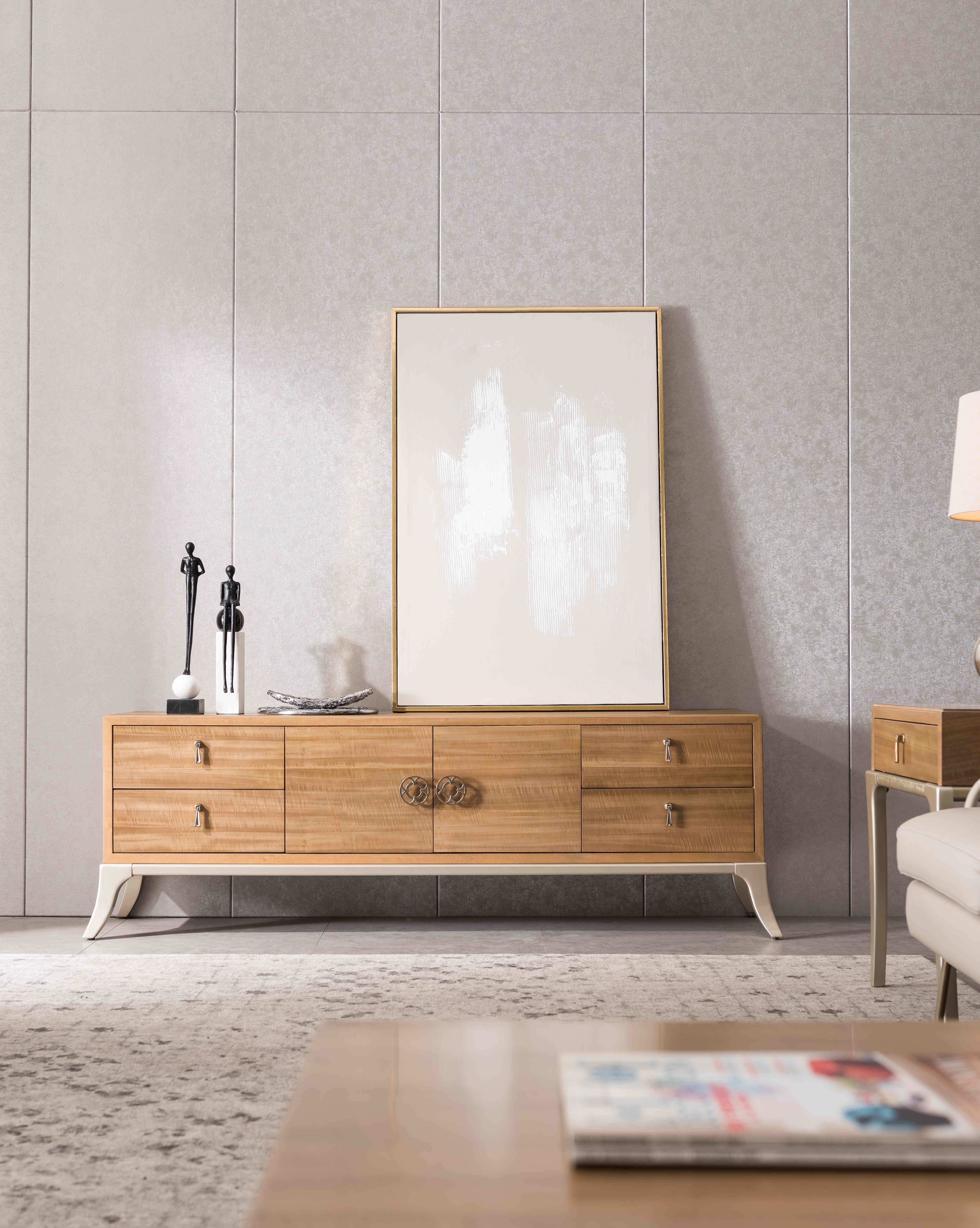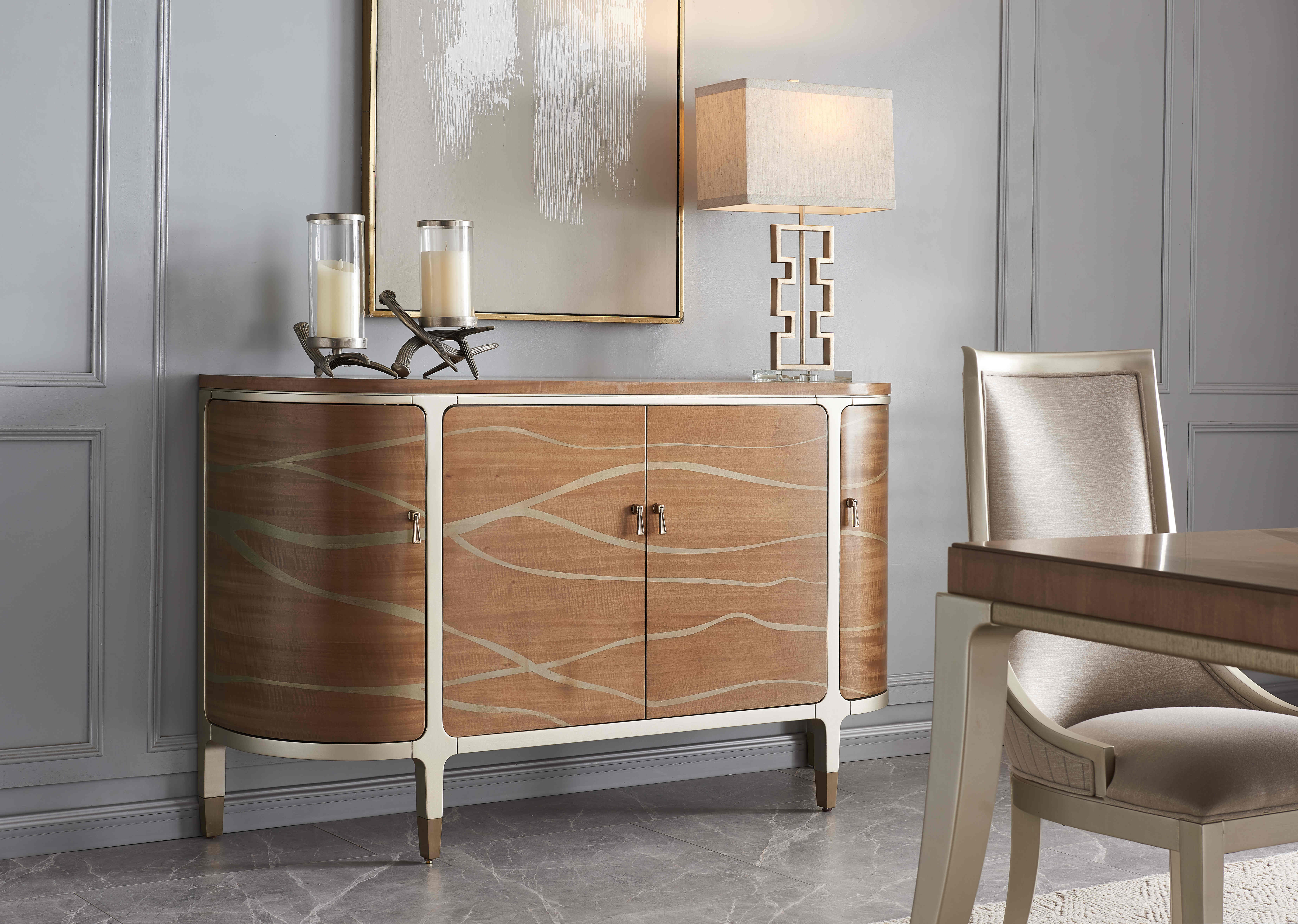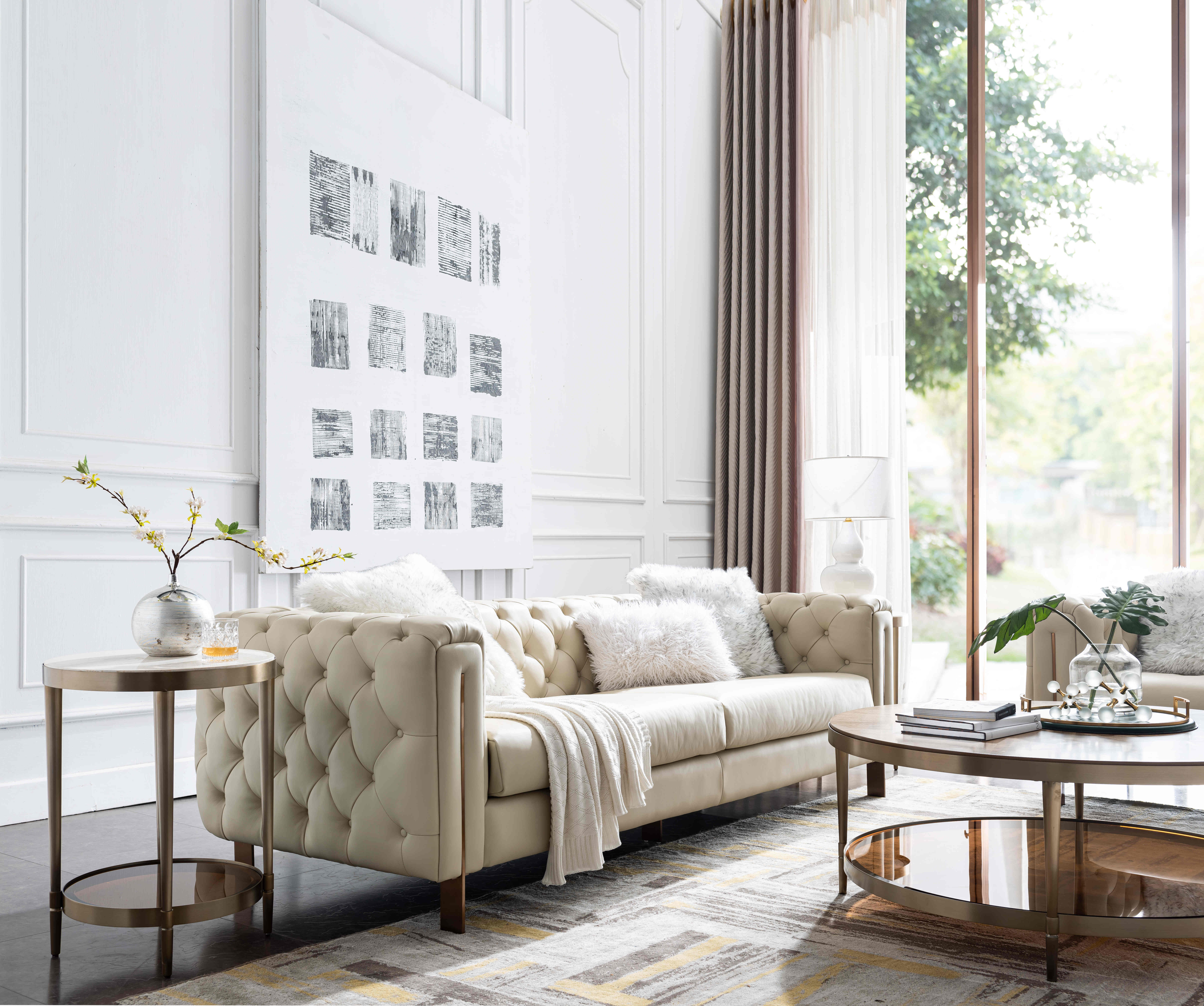 Universal Furniture环美家居推出Versailles系列,将法国凡尔赛宫引领时尚和历史潮流的灵感融入设计中,打造现代时尚元素感十足,又具有凡尔赛宫艺术奢华感的家居系列。Versailles凡尔赛系列中令人印象深刻的是它的金属元素,流畅的线条、清晰的实木金属涂漆,大理石材质,搭配极具质感的复古拉丝黄铜金属,塑造出整体高雅的质感风格。
