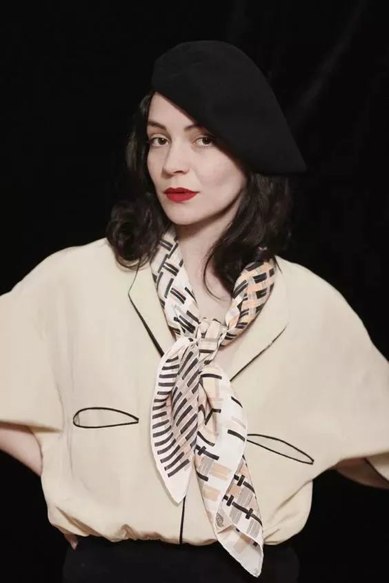 用一条丝巾或把方巾折成窄丝巾系在脖子上当choker,搭配一些无领的衣服,气质就很高雅。