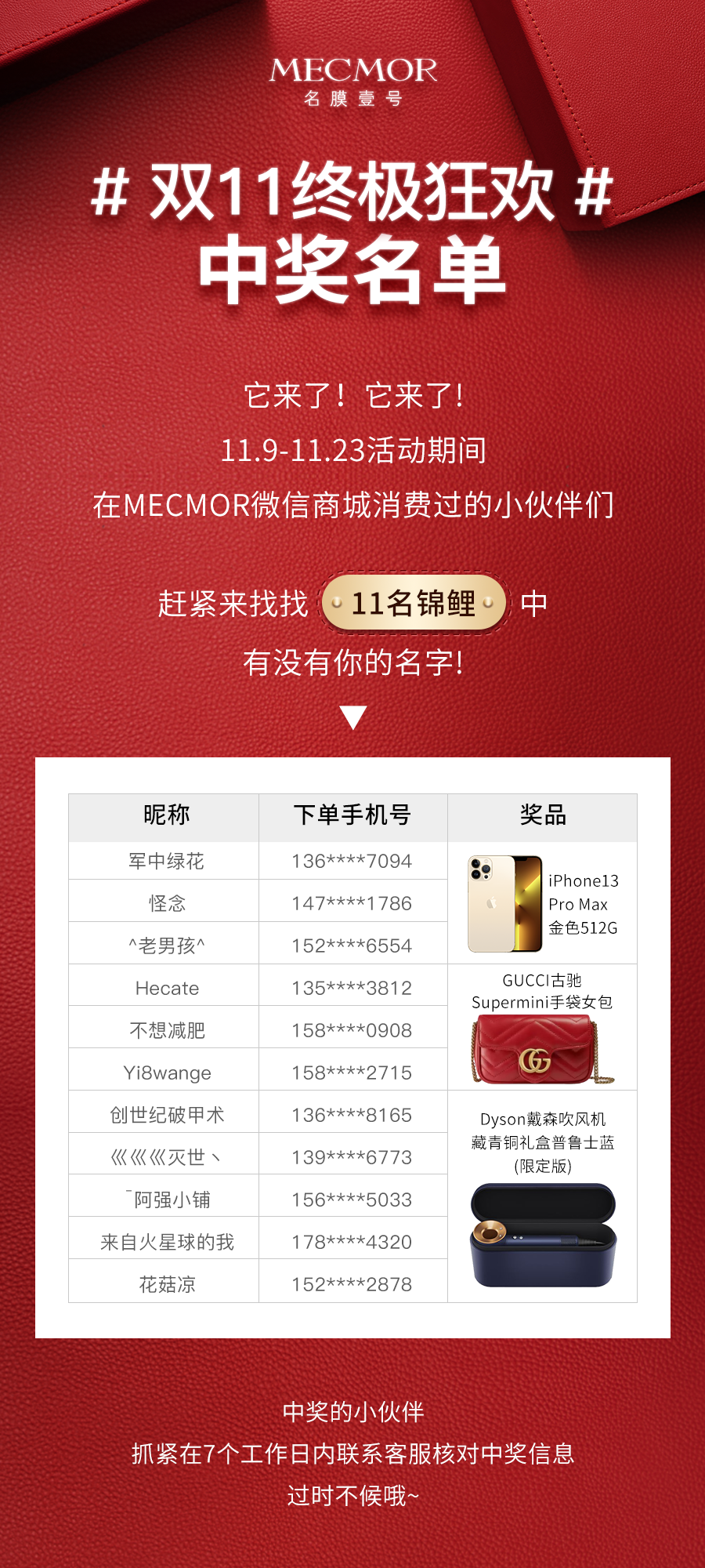 双11狂欢中奖名单,它来咯!