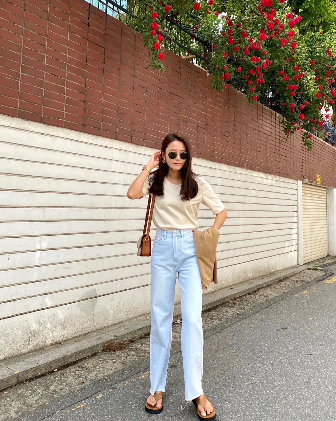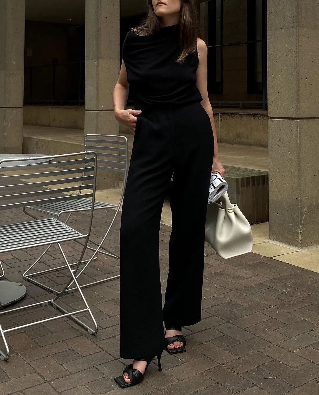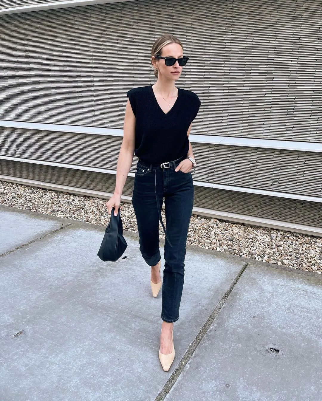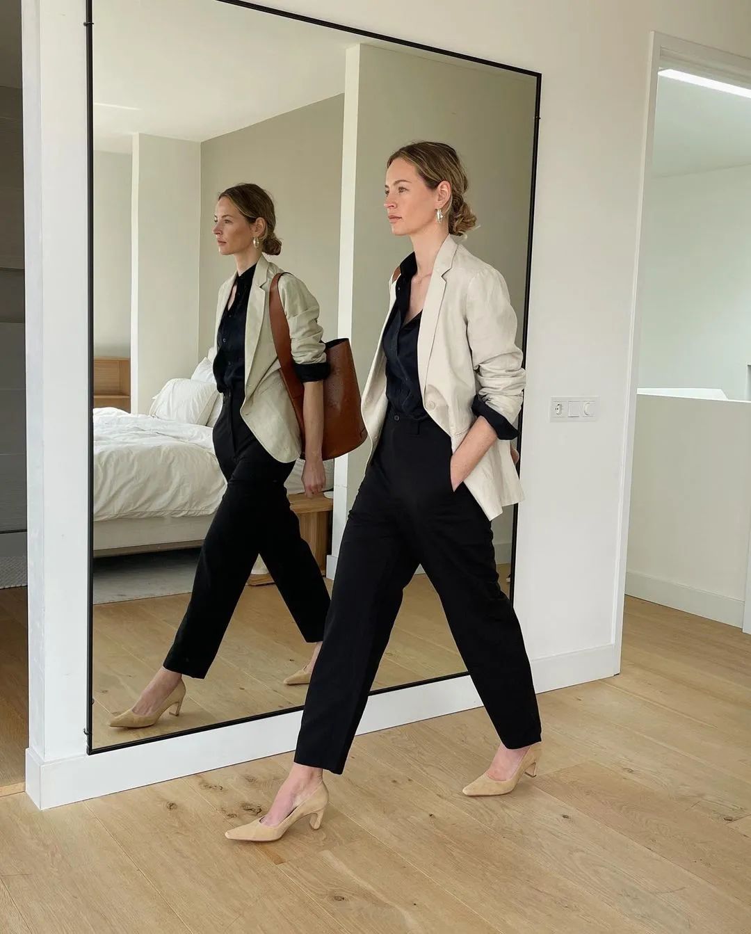 黑色铅笔裤,再加一双黑鞋子,这么穿和下半身失踪法有异曲同工之妙,很显高~▼