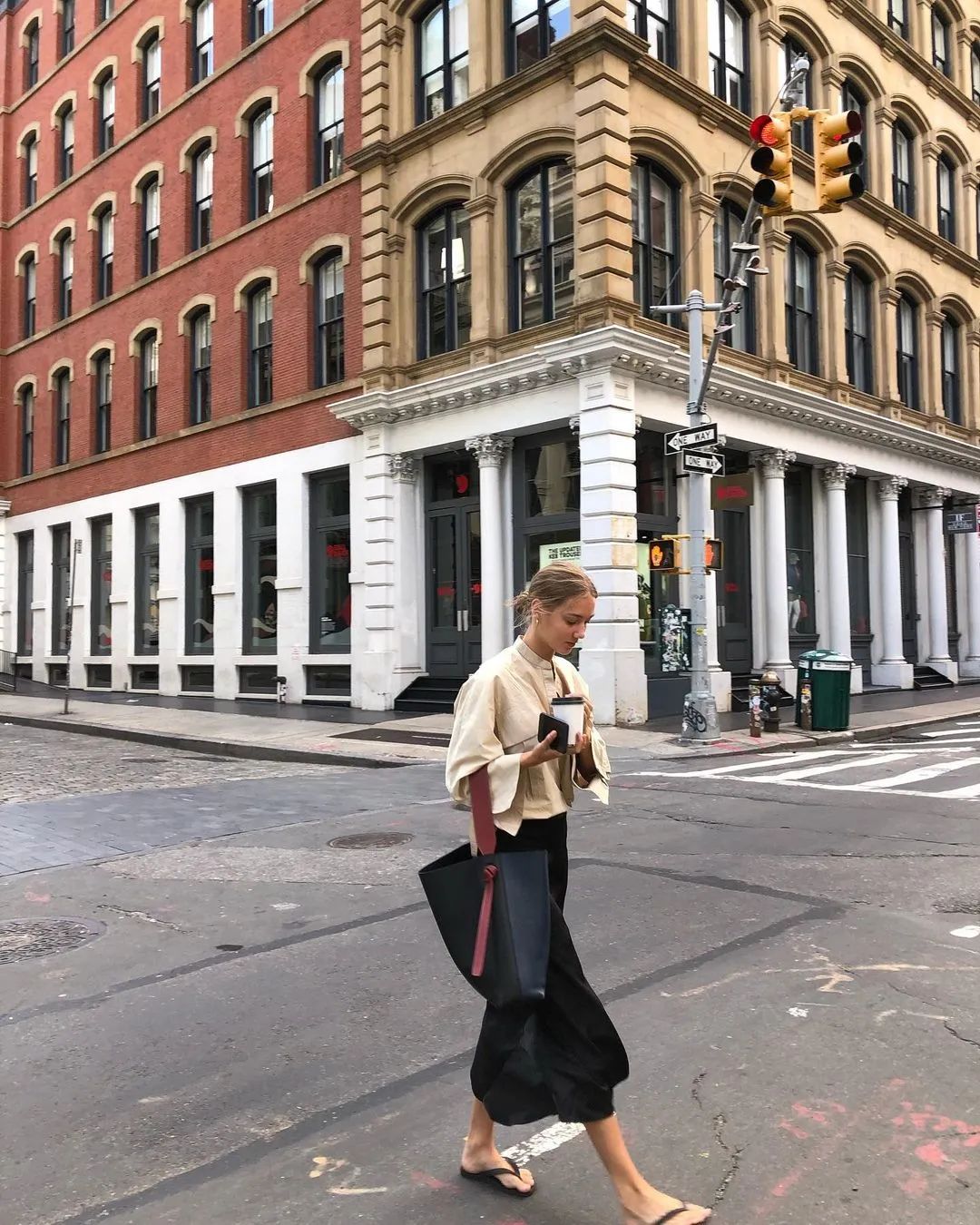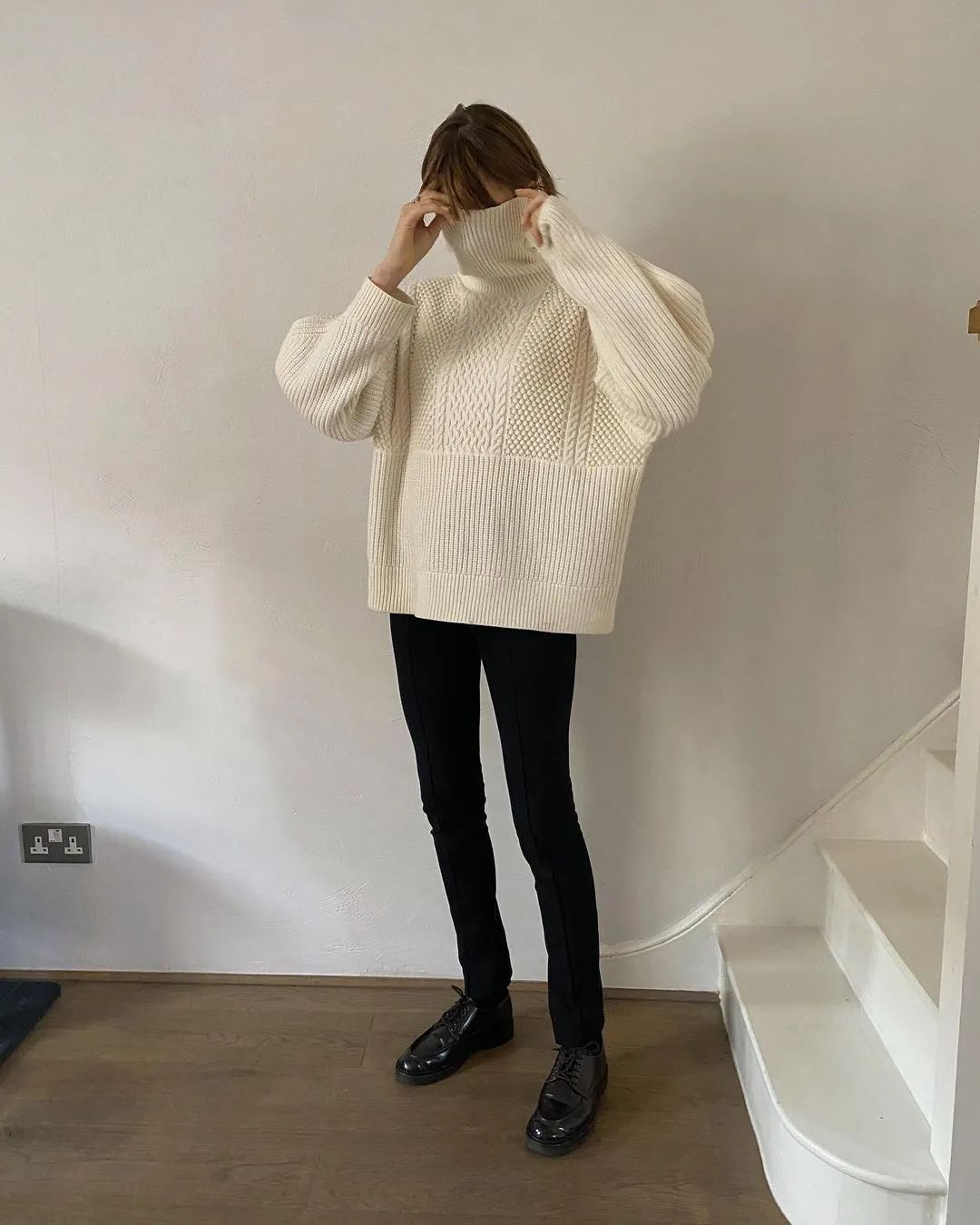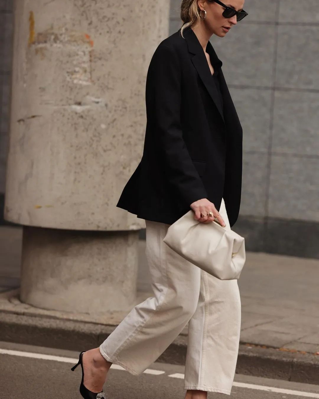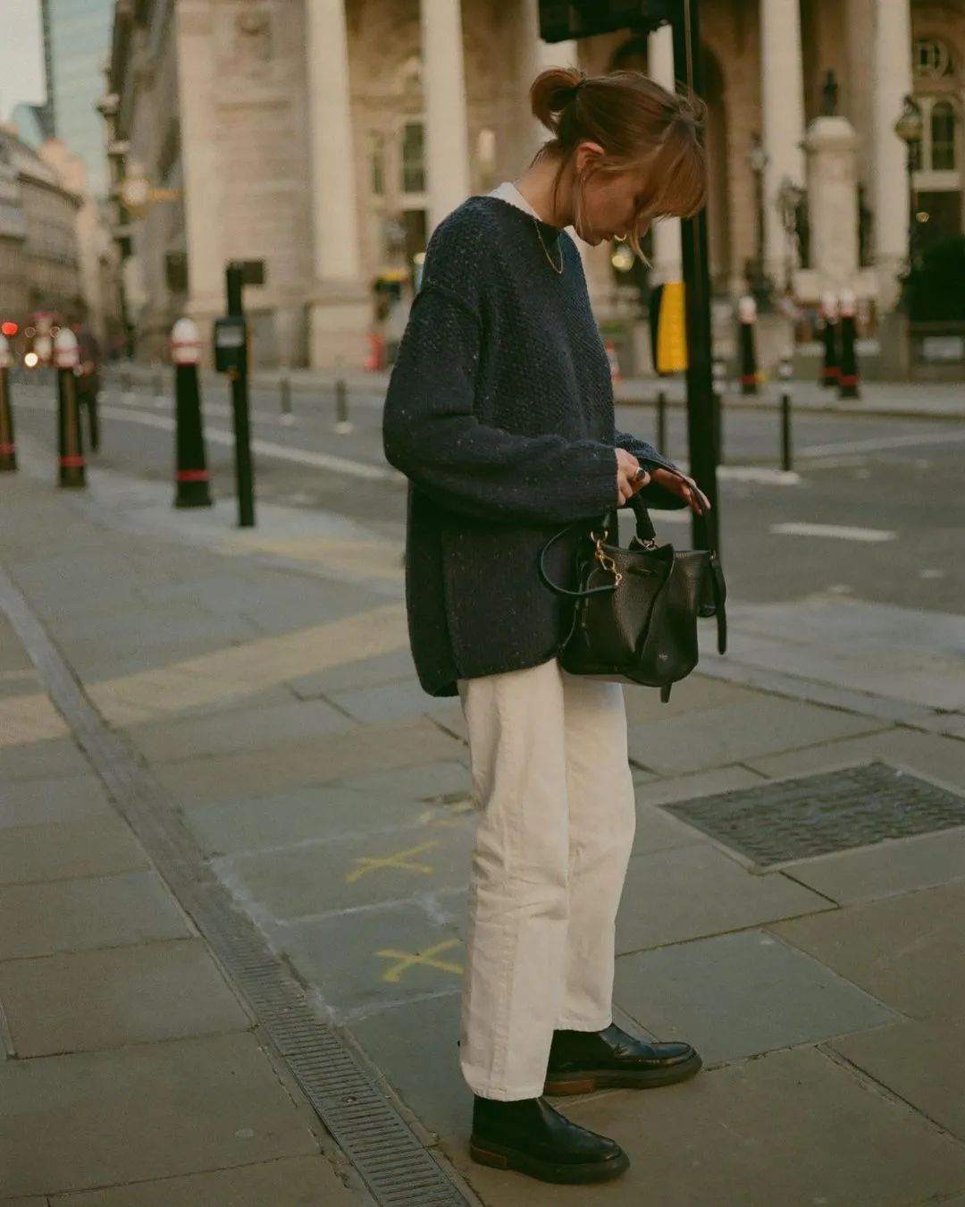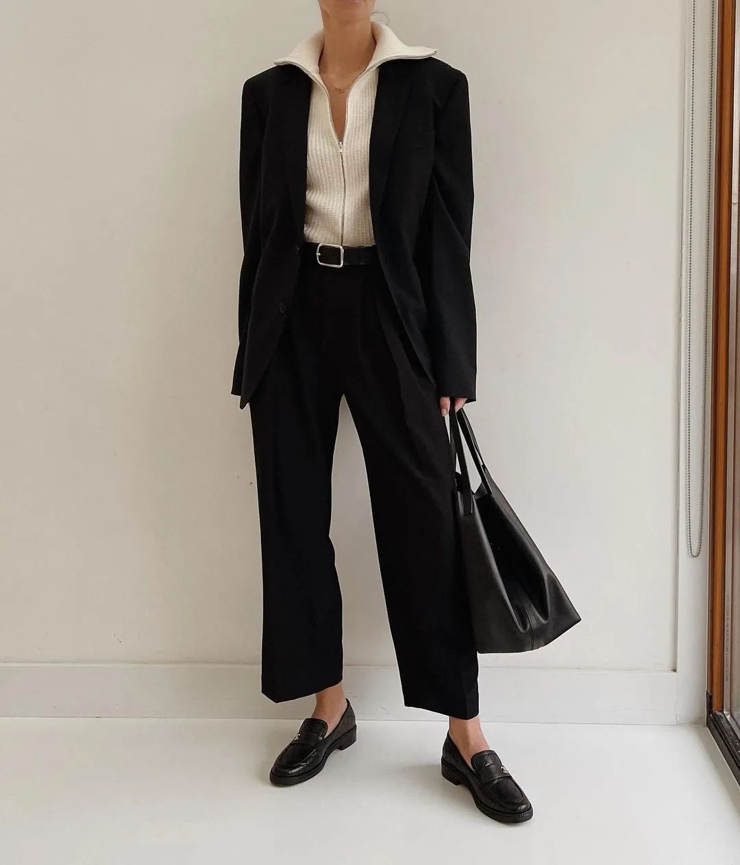 黑色铅笔裤,再加一双黑鞋子,这么穿和下半身失踪法有异曲同工之妙,很显高~▼