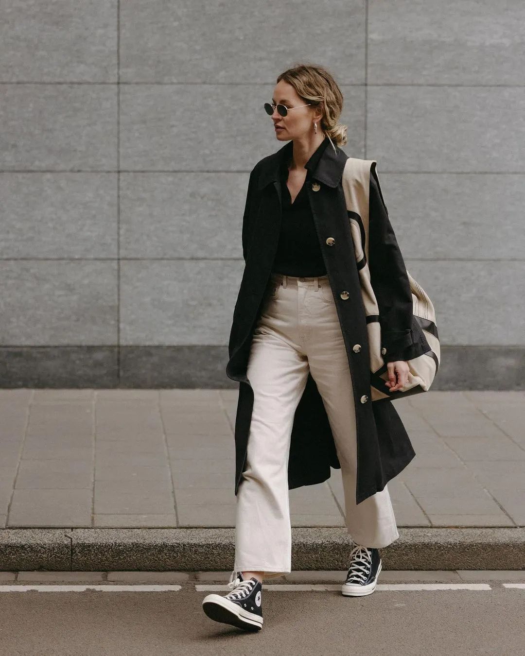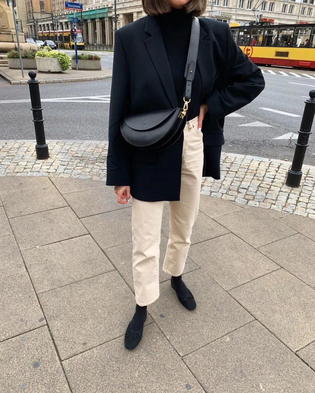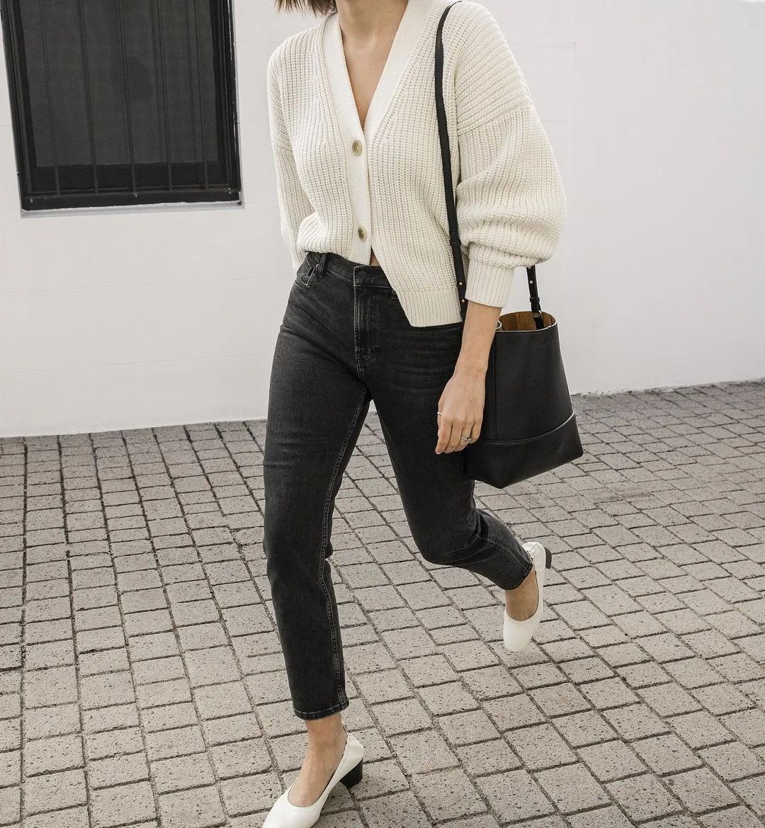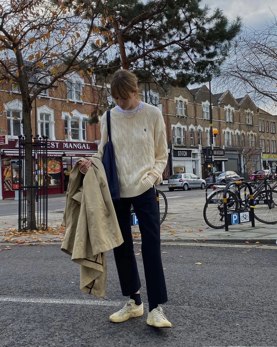 黑色铅笔裤,再加一双黑鞋子,这么穿和下半身失踪法有异曲同工之妙,很显高~▼