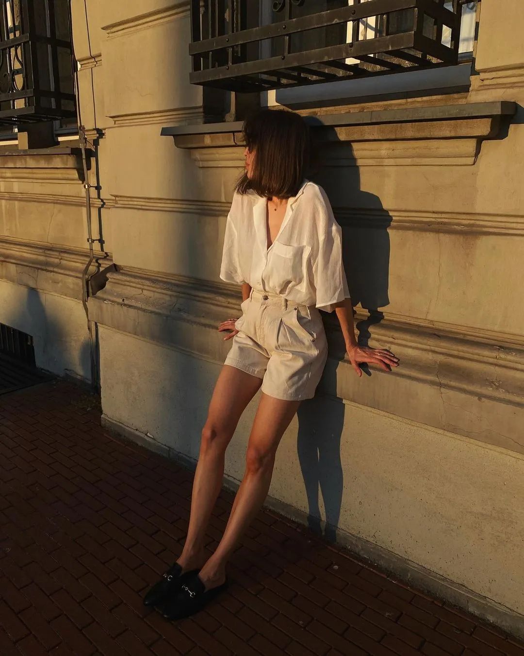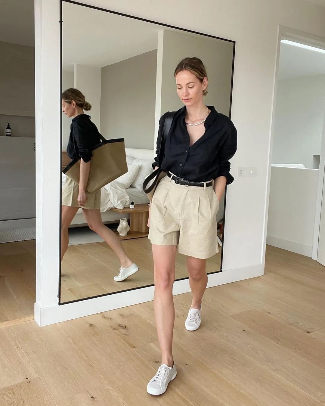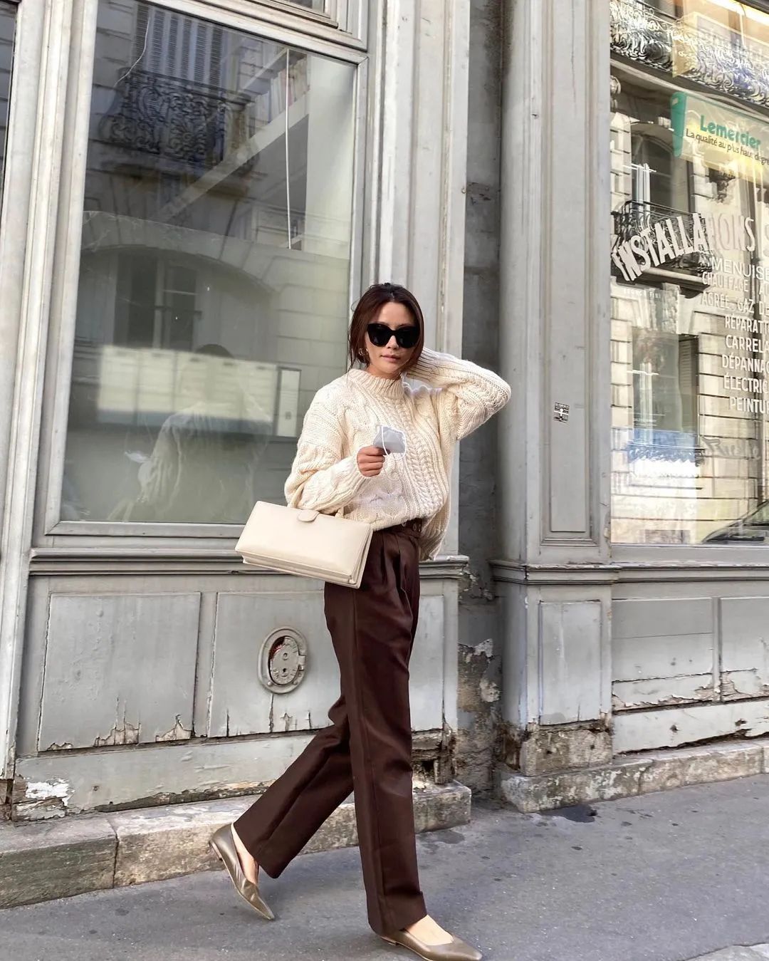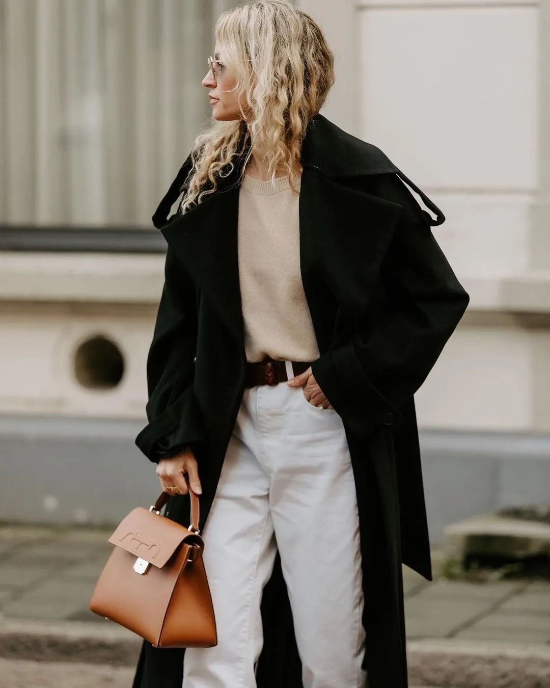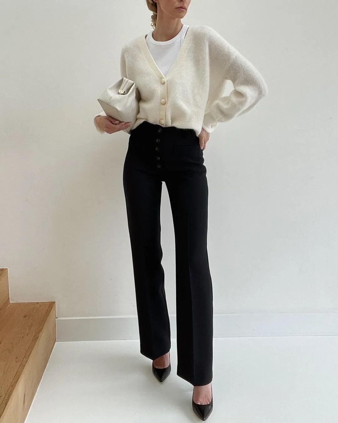 黑色铅笔裤,再加一双黑鞋子,这么穿和下半身失踪法有异曲同工之妙,很显高~▼