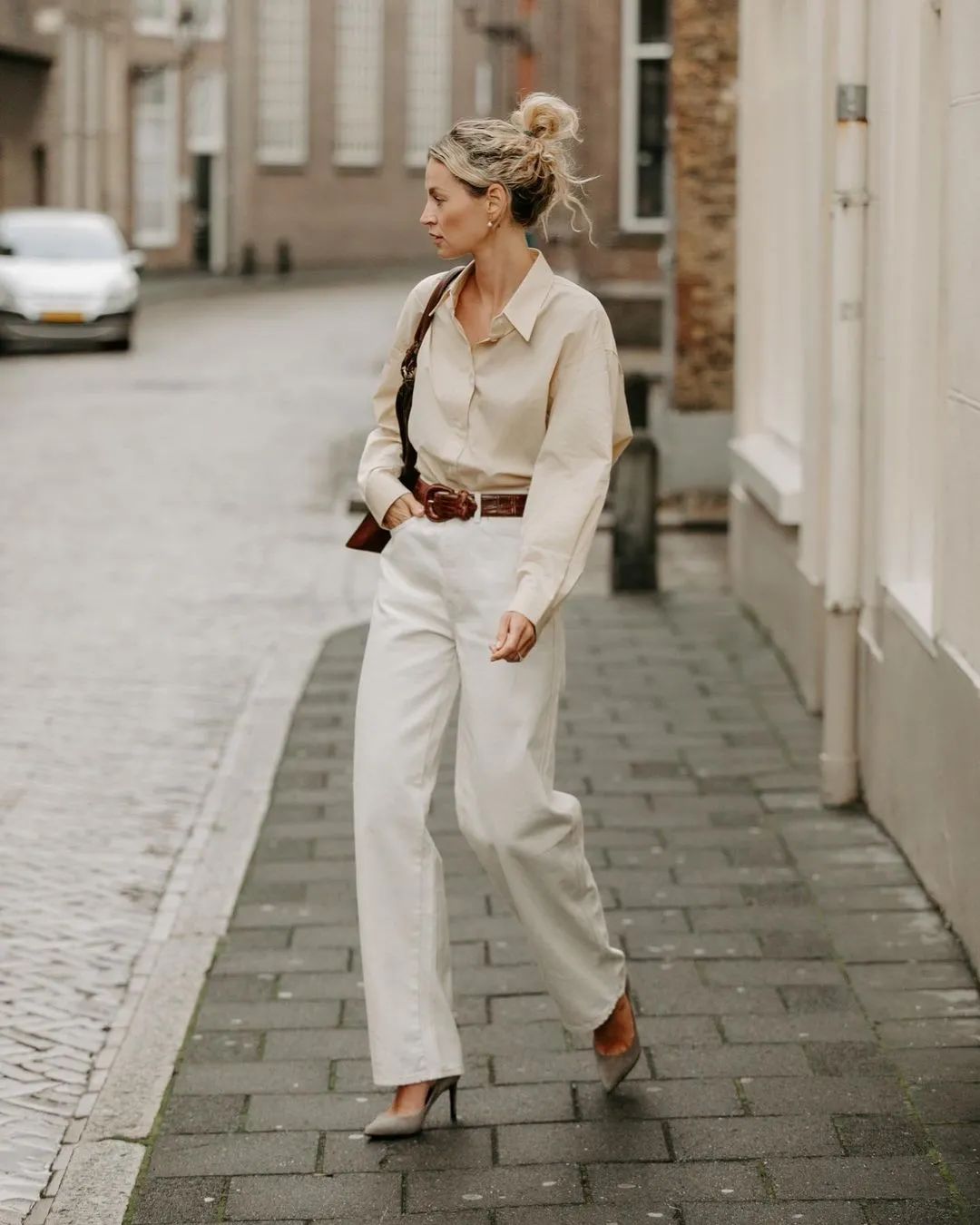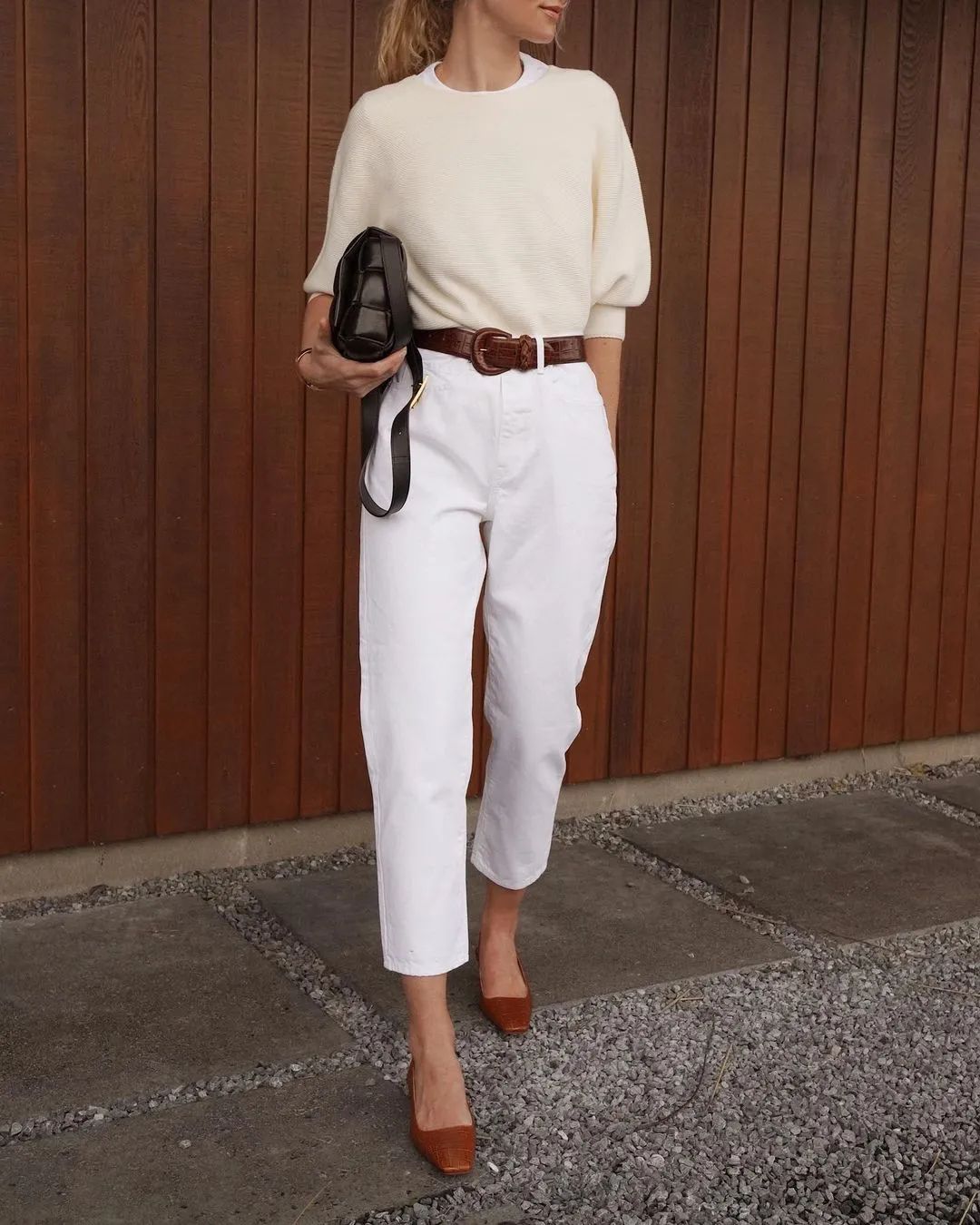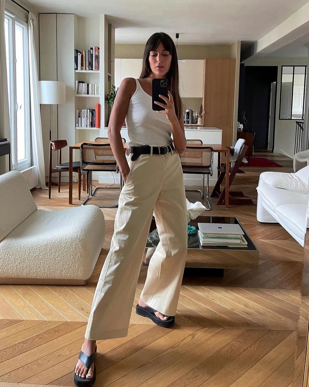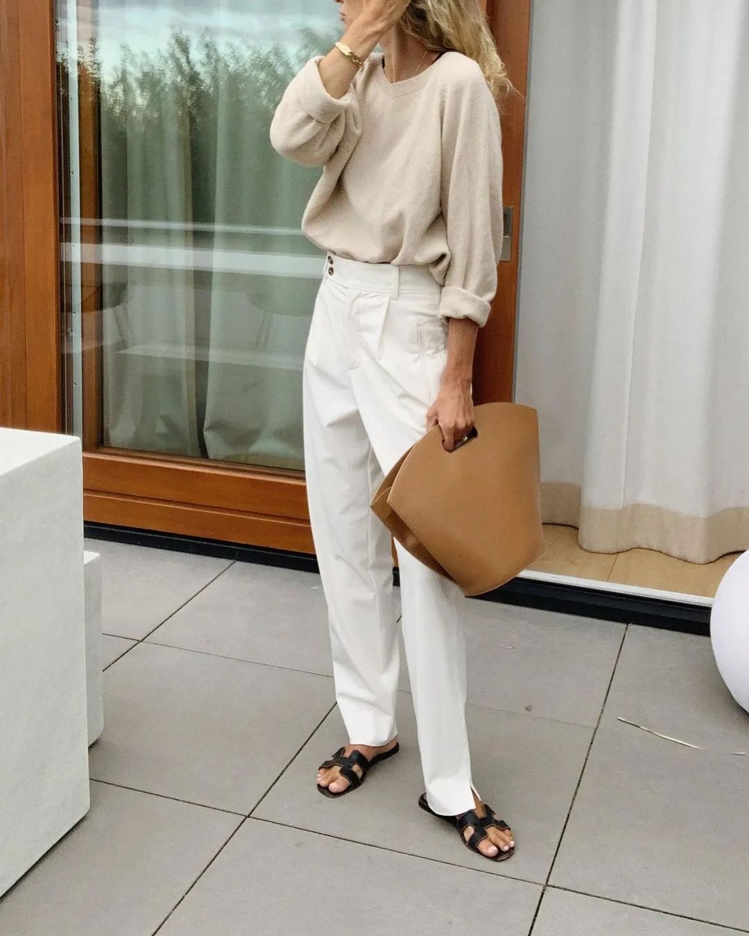 黑色铅笔裤,再加一双黑鞋子,这么穿和下半身失踪法有异曲同工之妙,很显高~▼