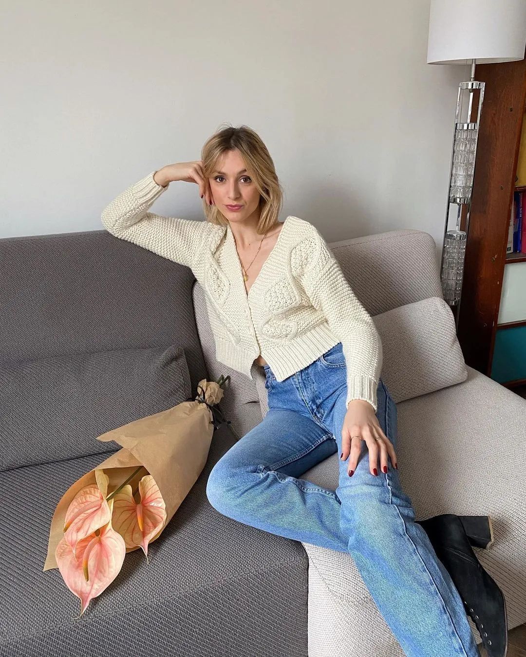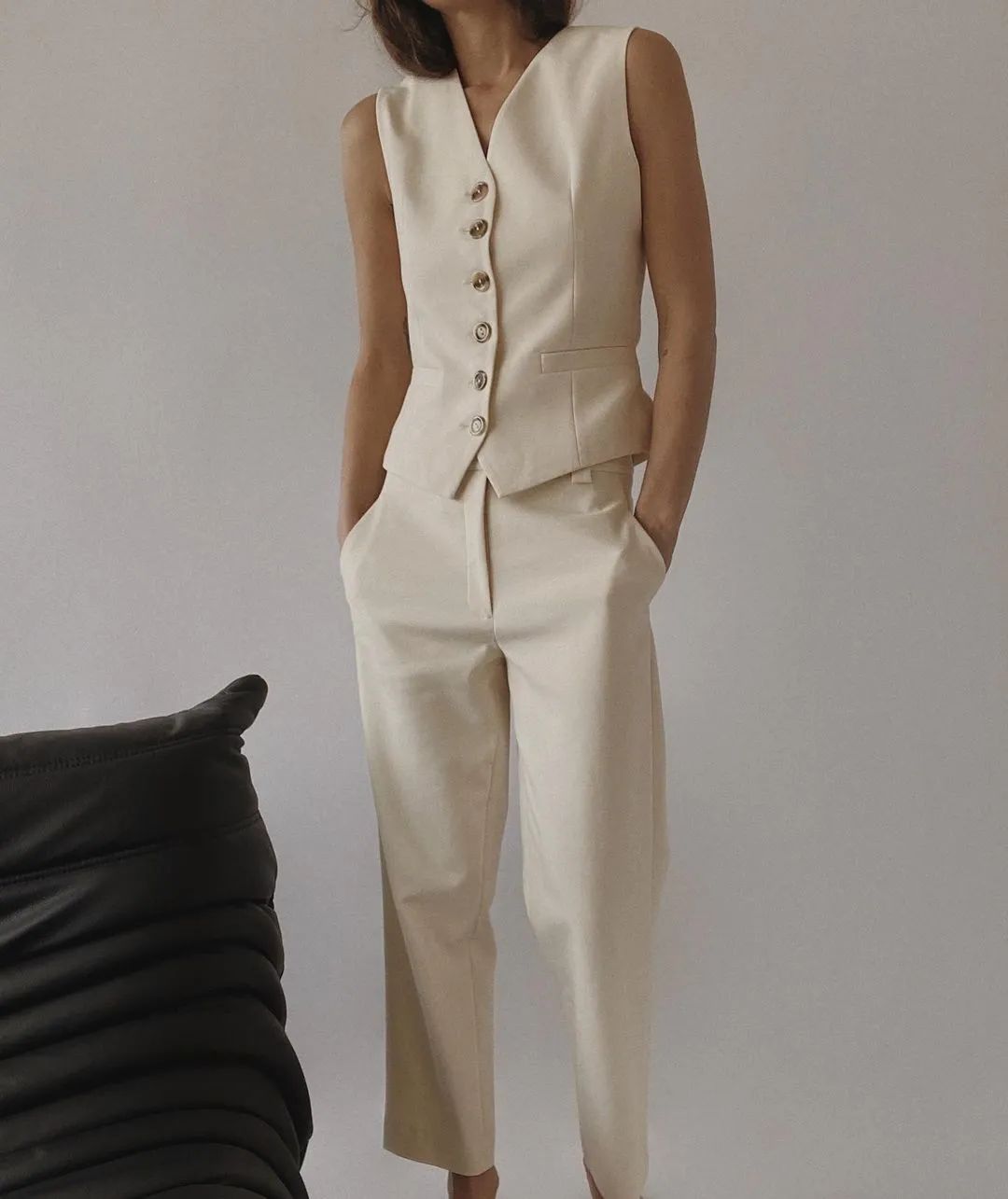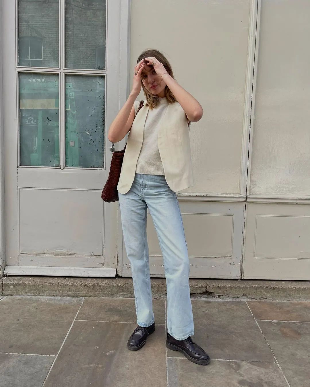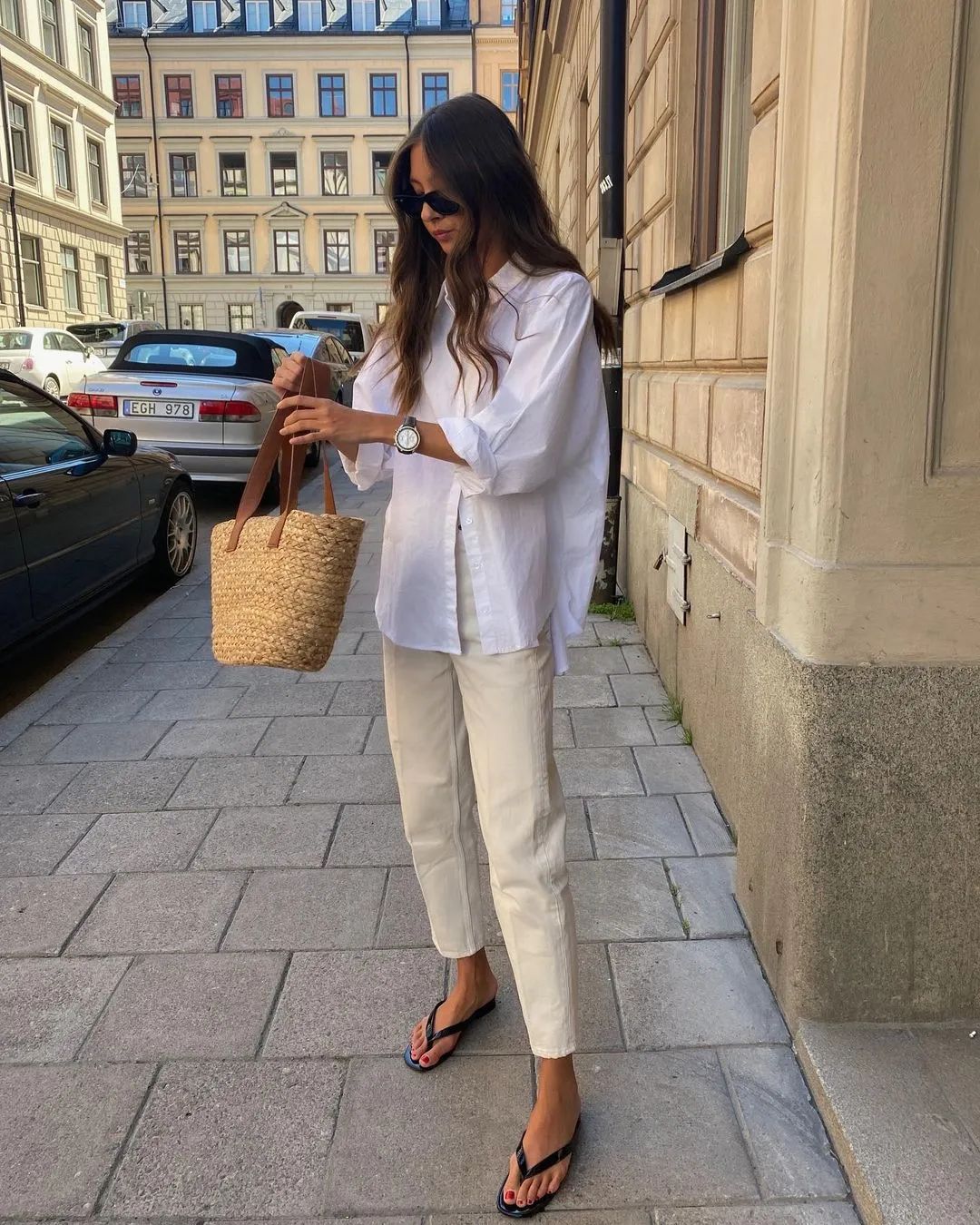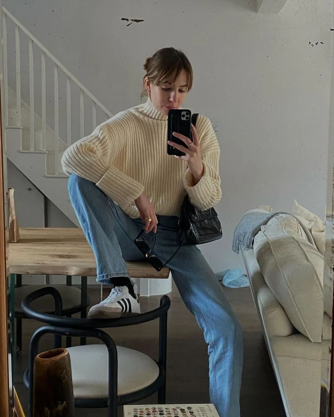 黑色铅笔裤,再加一双黑鞋子,这么穿和下半身失踪法有异曲同工之妙,很显高~▼