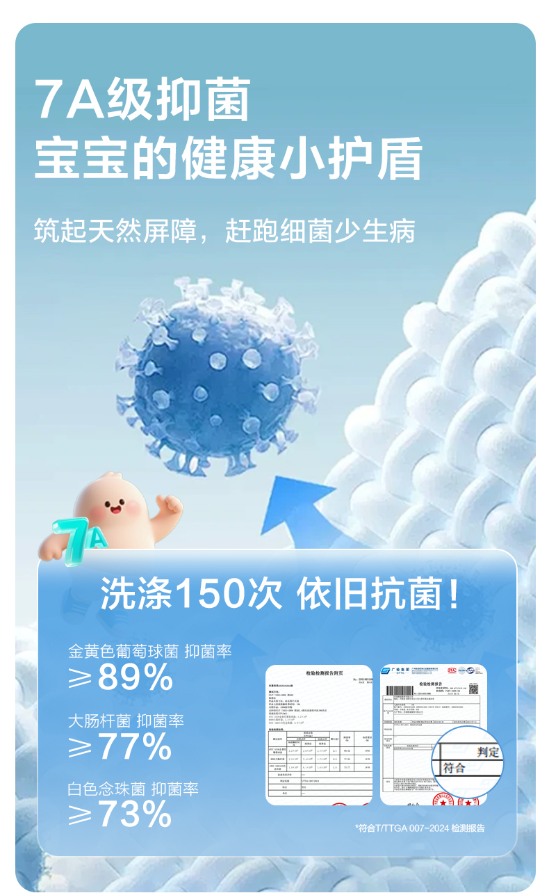 7A级抗菌+植物暖姜纤维🌿吸湿排汗还能促进身体自发热,宝宝穿暖不闷汗~