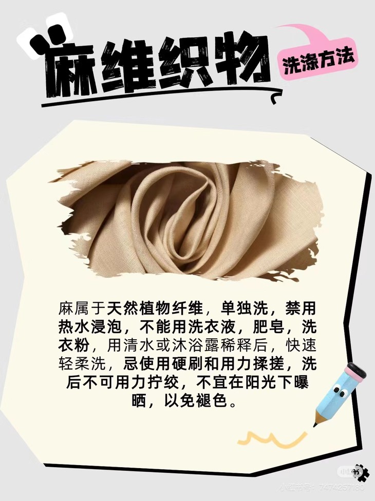 洗涤技巧:用冷水手洗,避免机洗和热水,第一次洗涤时添加少量白醋有助于固色。