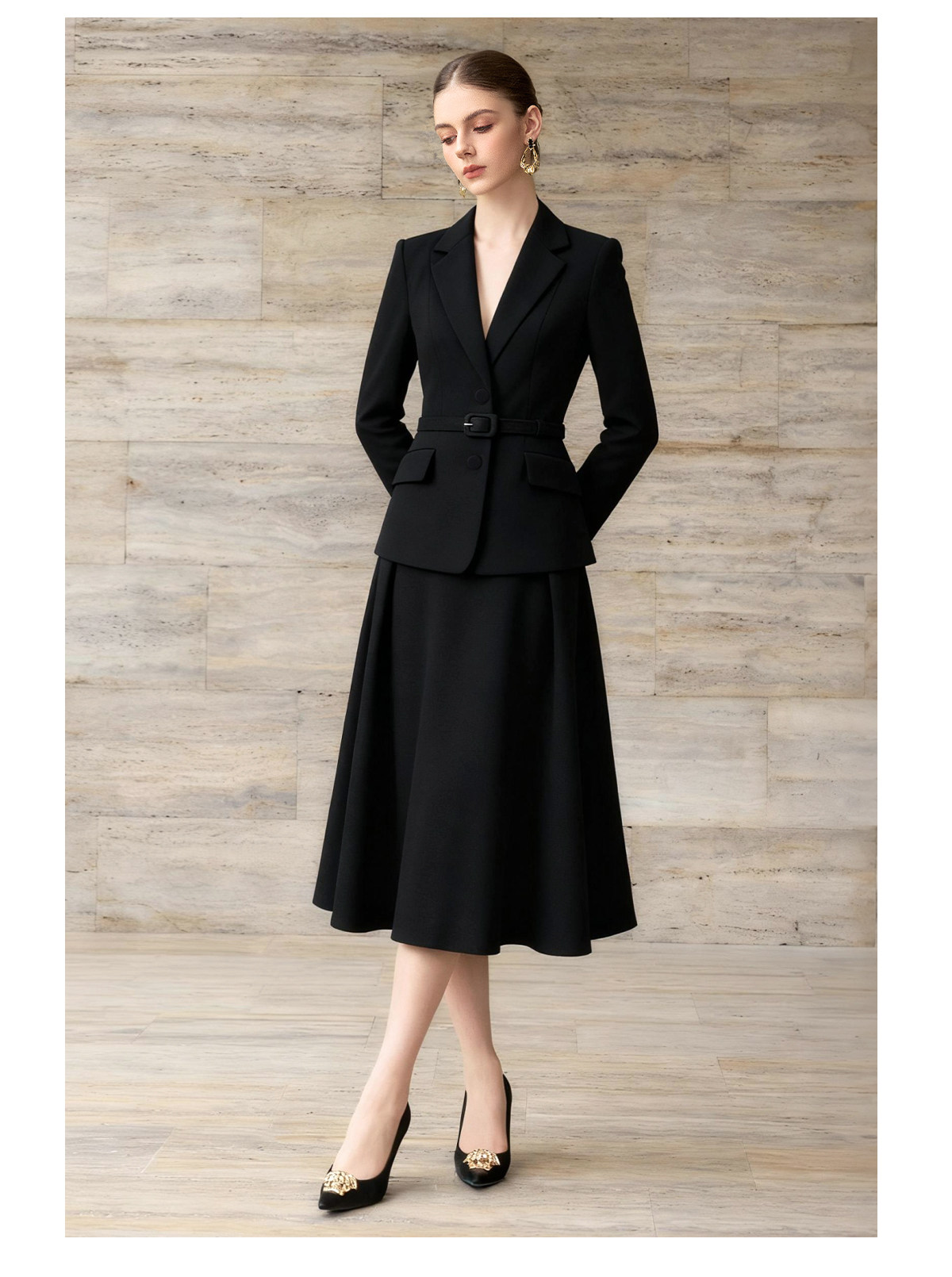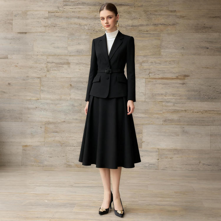 纯黑羊毛套装自带沉静力量,