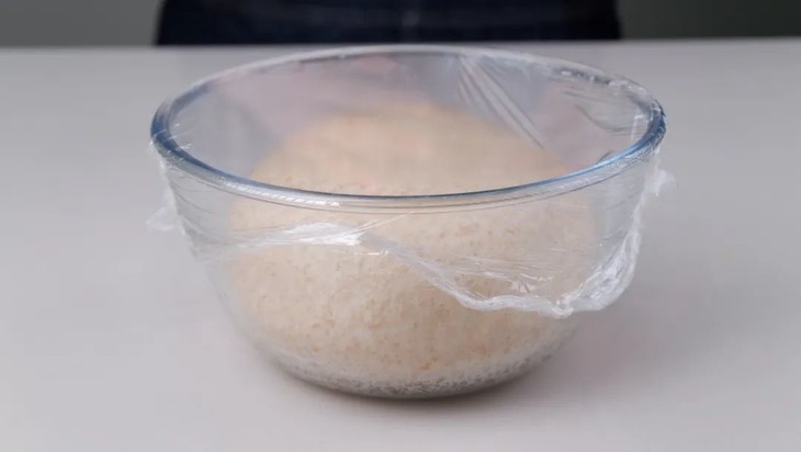 放入容器中盖上保鲜膜,进行一次发酵,发酵一倍大