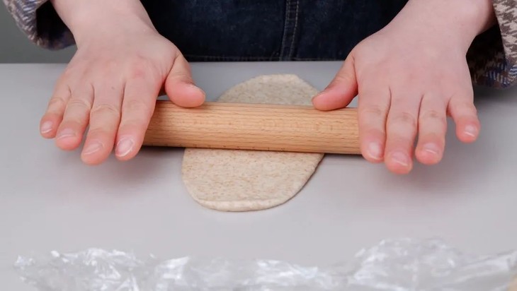 将一端擀成薄片,擀薄片的一端包裹另一端面团