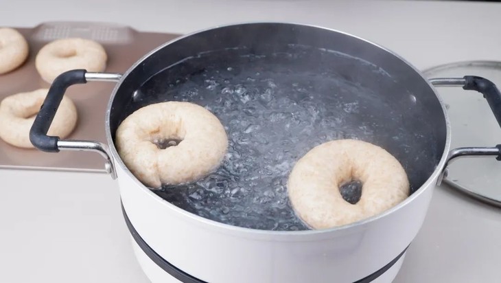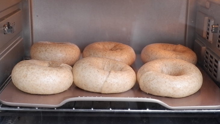 发酵一倍大,取出采用沸水两面分别煮30秒,放入烤箱进行烤焙,上火180,下火200度,烘焙20分钟即可