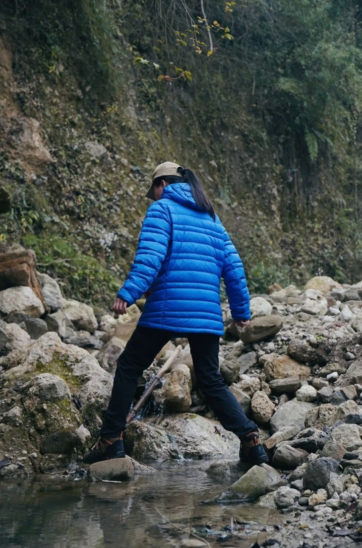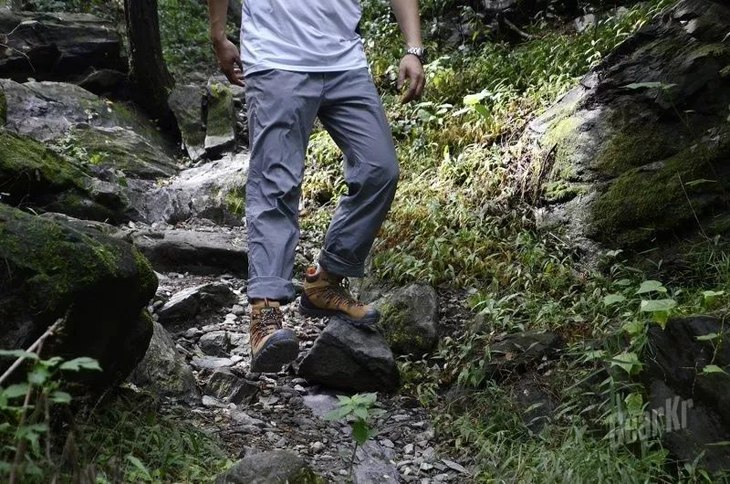 在碎石路段下山时,采用侧向方式,能够感受到脚掌外缘的抓地力,有效抵住松散的碎石,避免滑动。