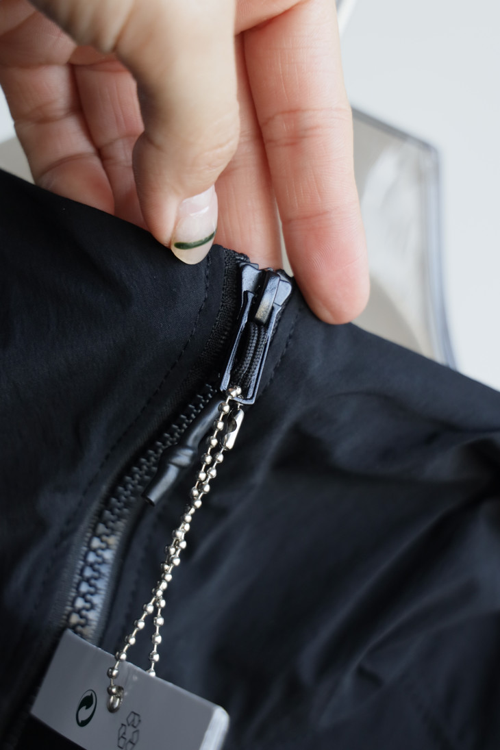 前领加高至可全覆盖脖颈至下巴位置,门襟单独定制顺色的ykk拉链开合,拉头是橡胶绳的!