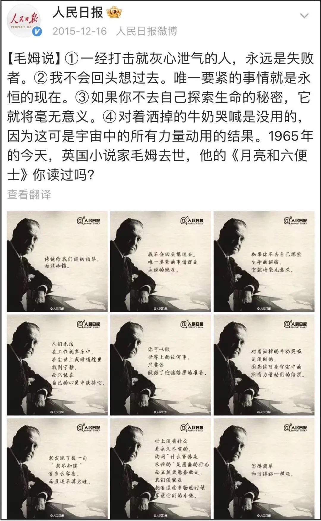 千万读者在社交平台上,表达对毛姆的崇拜。