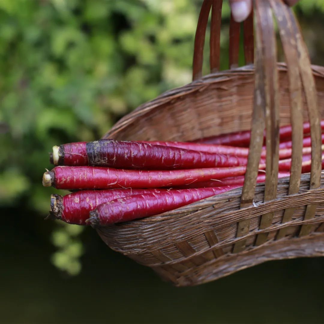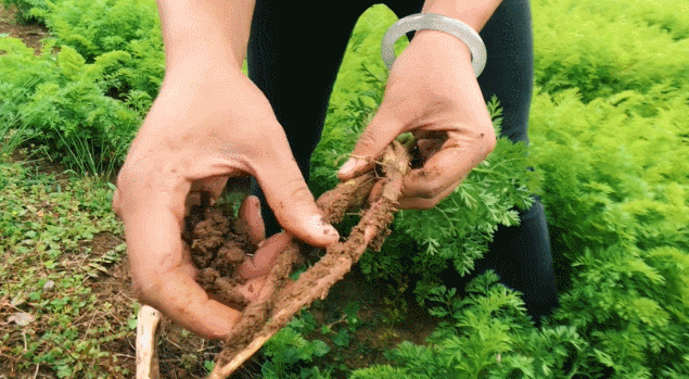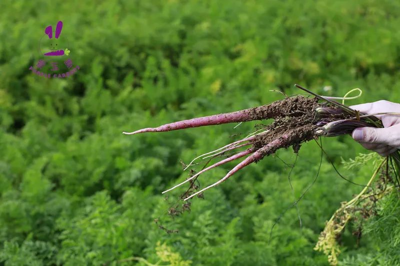 半野生种植的紫胡萝卜,就像人参一样,身材虽细,根茎却深扎泥土,可以达到50cm长。