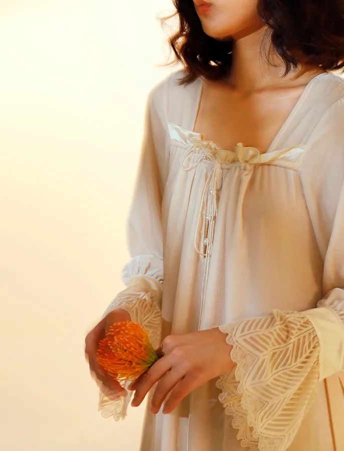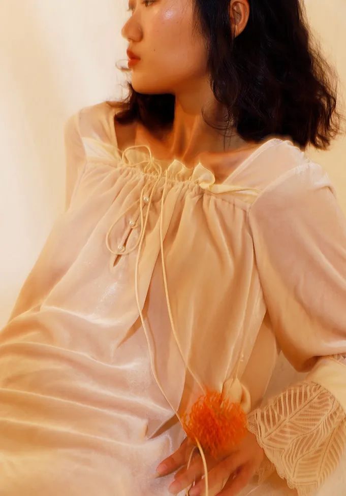 下摆部分同样采用的是丝绒与蕾丝的结合,腿部的美感若隐若现,更添美好氛围。建议大家搭配同系列的丝绒外袍,随着天气越来越凉,这样的搭配更适合随性居家。在提升幸福感上,它们绝不会让你失望。