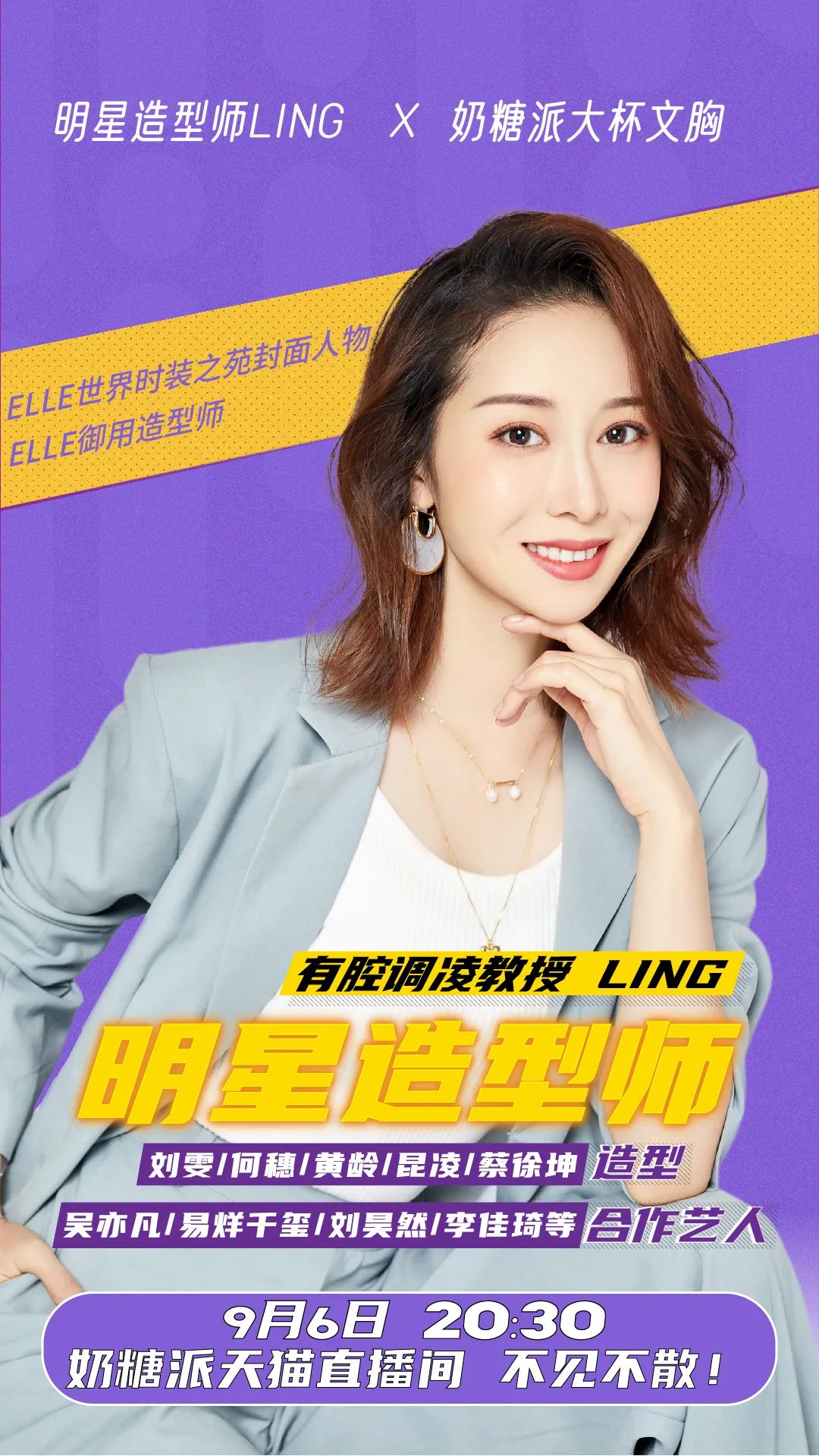 奶糖派特邀著名时尚杂志《Elle》御用造型师、明星造型师——LING老师到奶糖派天猫直播间。