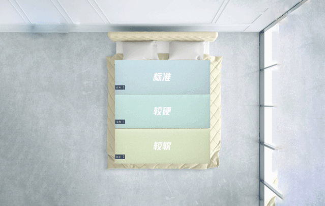 这款床垫不仅是在材料上有所创新,在形态上与普通床垫也截然不同。它摒弃了传统整张床垫设计,改为三段式,针对性护理肩背、腰椎、尾椎。