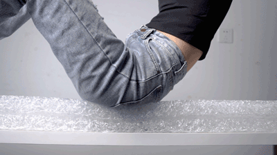 在等长的记忆棉和空气纤维赛道上抛出保龄球,保龄球在记忆棉上很快就停下,空气纤维却支撑着它直达终点!