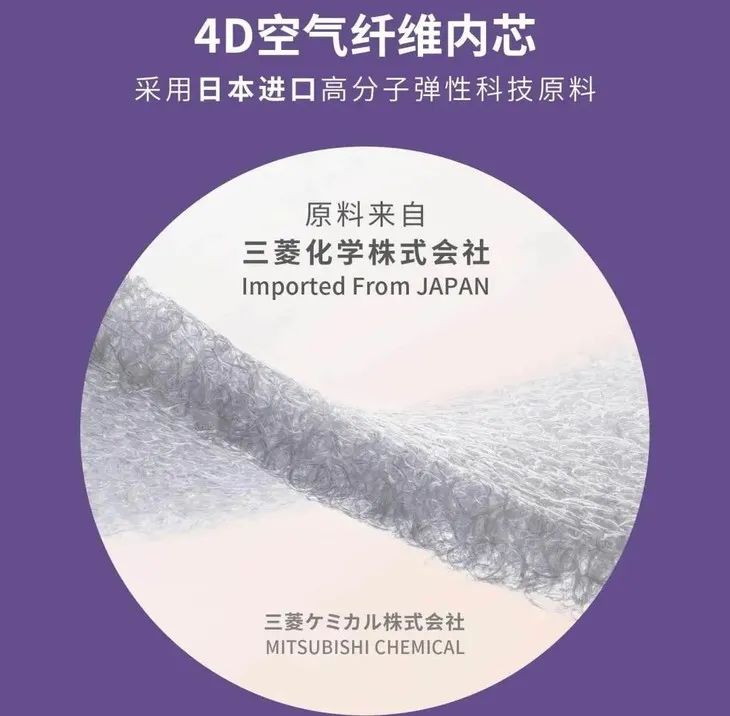 这种内芯的原料来自三菱化学株式会社生产的高分子弹性科技原料,是一种新型材料。