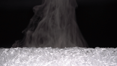 我们又将干冰放在床垫下,水雾气很轻松地就通过了床垫,从另一侧导出了。