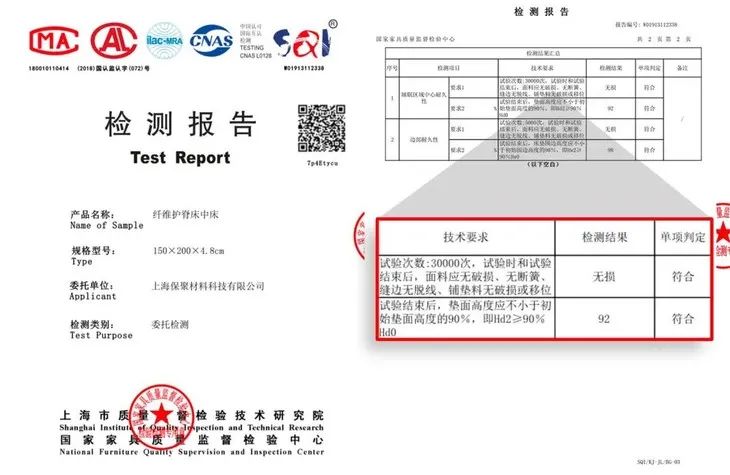 根据检测,菠萝斑马的床垫在碾压30000次床垫中心后,面料无破损,结构无断簧,垫面高度仍在初始值90%以上。