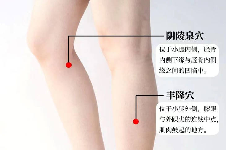丰隆穴健脾祛湿,此穴主治头痛、眩晕以及咳嗽痰多等痰饮病证,每日艾灸15分钟可以有效健脾祛湿。另外,艾灸阴陵泉穴、足三里、解溪穴等也都有祛湿的功效。
