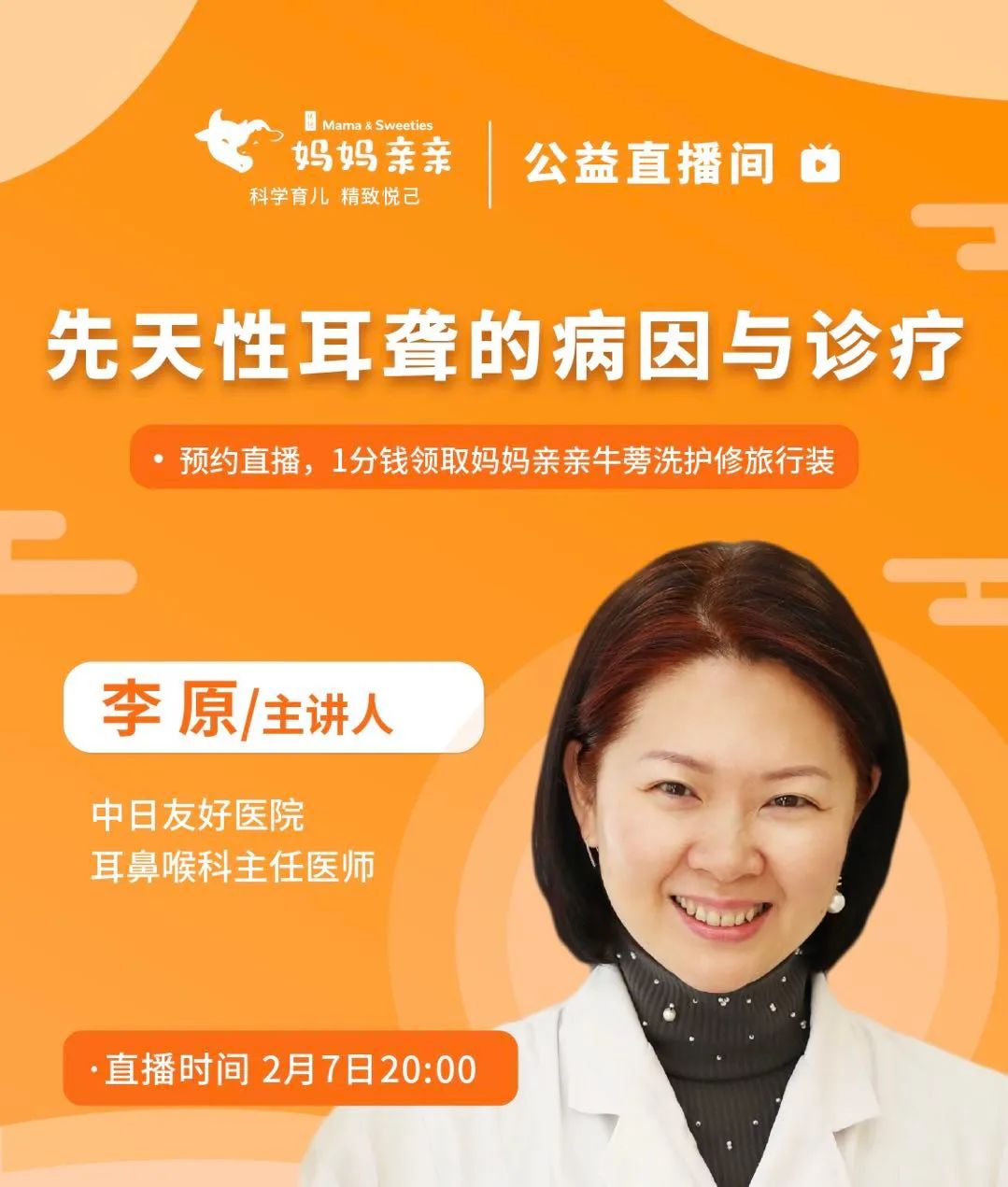 宝宝听力太重要了!很多宝妈关心先天性耳聋可以预防吗?一旦先天性耳聋,还可以治疗吗?2月7日,妈妈亲亲公益直播间特邀中日友好医院耳鼻喉科主任医师—李原,给大家科普先天性耳聋的病因与诊疗,以下为直播精华部分。