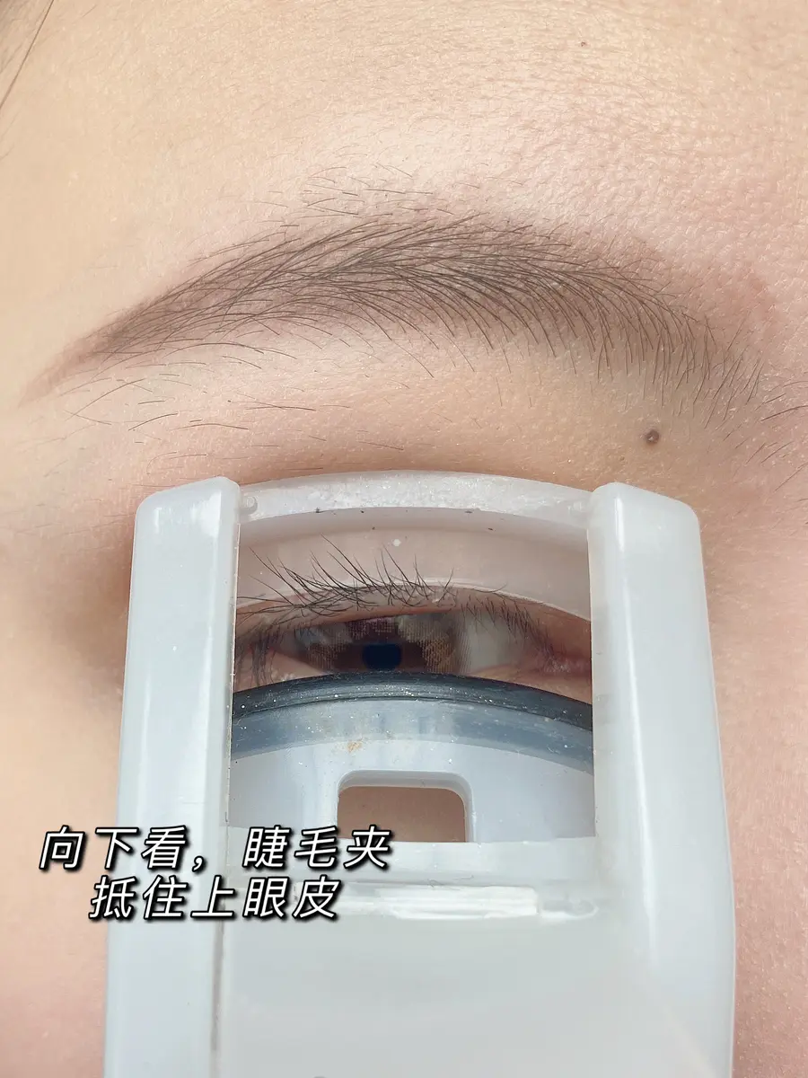 1️⃣眼睛向正下方看,睫毛夹靠近