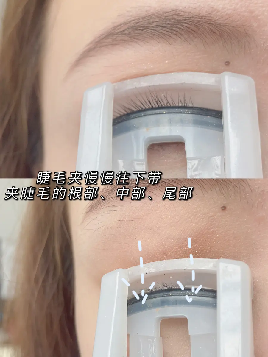 一边移动一边夹睫毛的前中后部分