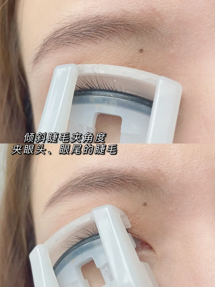 3️⃣睫毛夹调整角度,眼头和眼尾
