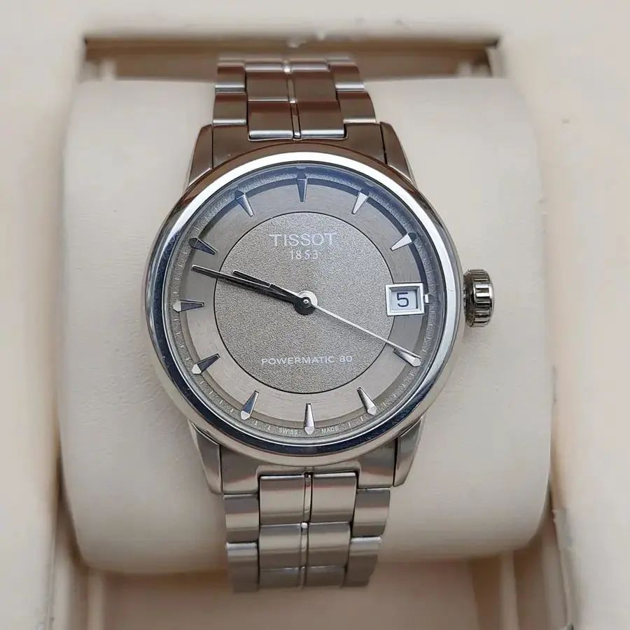 知性系:天梭经典系列T086.207.11.301.00女款机械腕表,33mm表径,青铜色表盘钢带,精钢材质表壳,日期显示,单表95新。