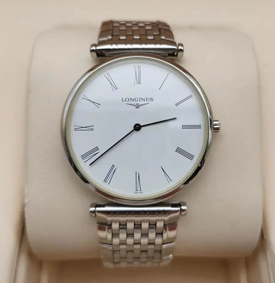 复古系:浪琴瑰丽系列L4.709.4.11.6中性机械款,33mm表径超薄款,男女均可佩戴,白盘钢带罗马刻度,95新有盒子皮带。