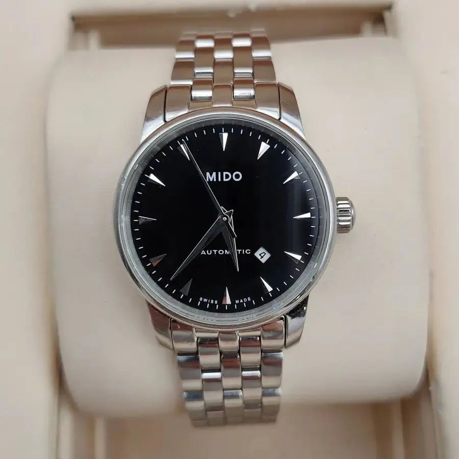 高冷系:美度贝伦赛丽系列M7600.4.18.1女款机械腕表,29mm表径,黑色表盘钢带,精钢表壳表链,日期显示,单表9成新。